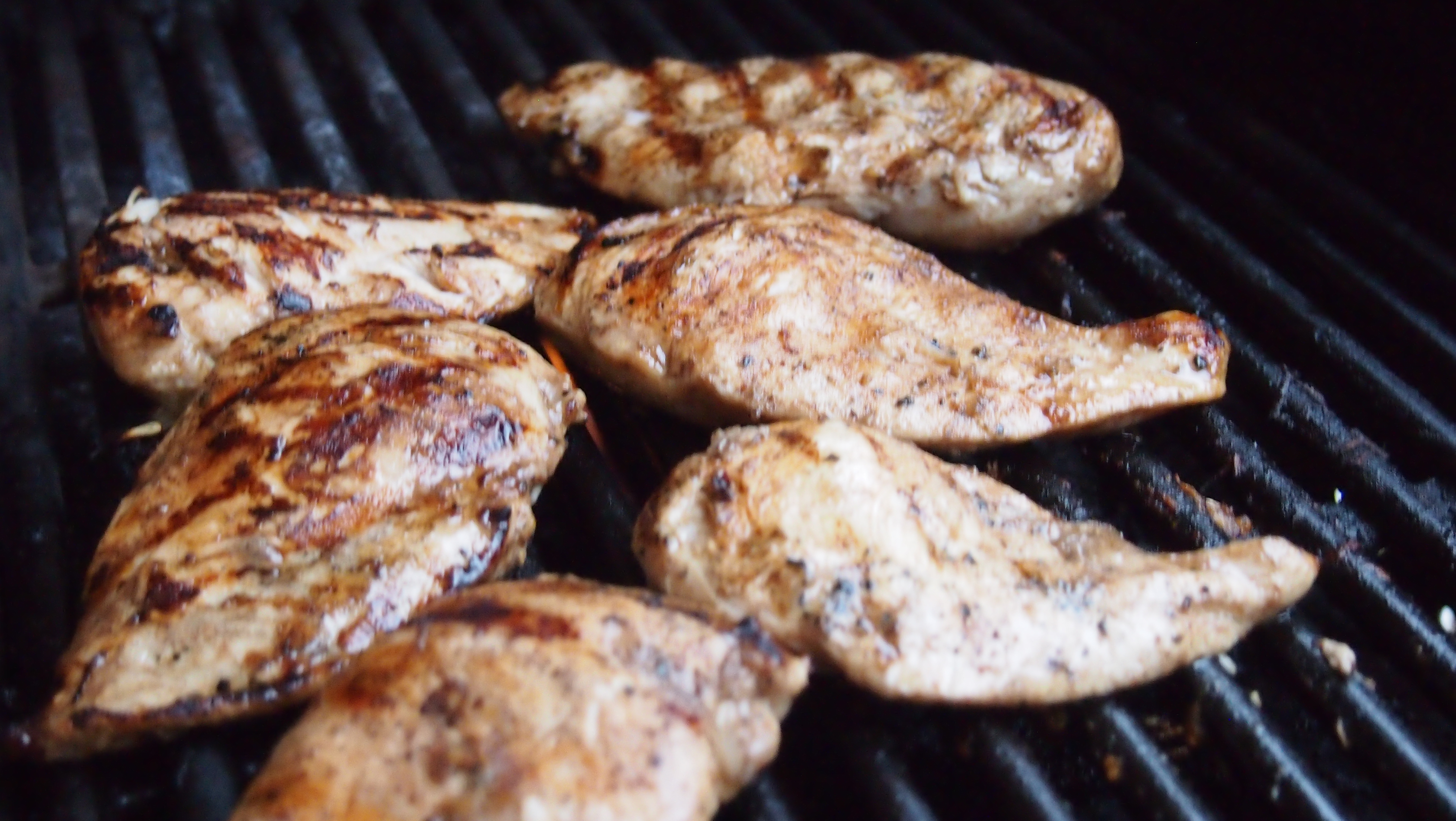 Me teimme ehkä sitä perinteisintä Caesar salaattia, eli lisukkeena kanaa. Kanat marinoimme edellisenä iltana meidän perusmarinadilla, joka pitää sisällään oliiviöljyä, balsamicoa, paljon valkosipulia sekä riittävästi suolaa ja pippuria. Kanojen on hyvä antaa maustua useampi tunti, mutta parasta tulee kun ne saa olla yön yli. Kanat saa grillissä mukavan ”grillin maun” ja niistä tulee todella meheviä. Toimii myös paistettuna.