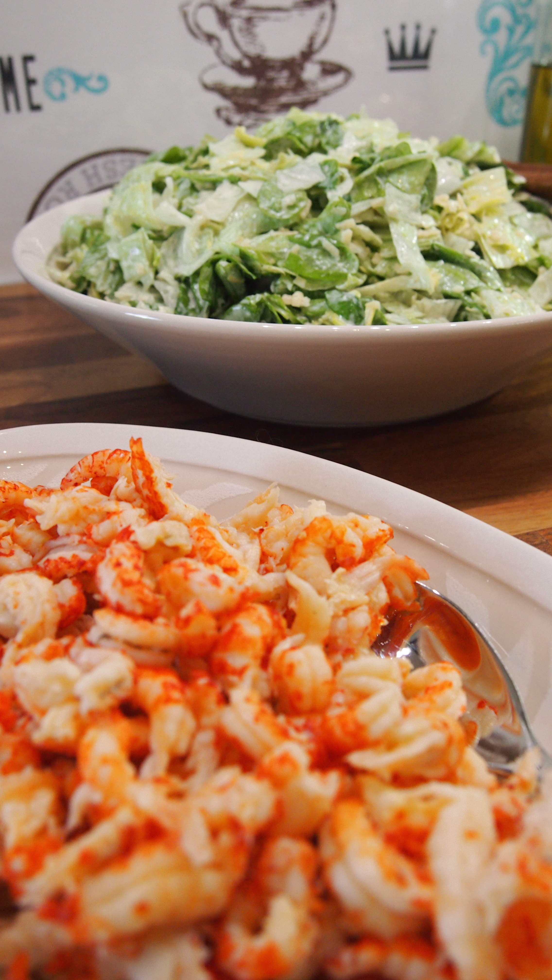 Brunssimenu ideoitiin yhdessä sisareni ja hänen miehensä kanssa ja puolet ruokalajeista tulivatkin heidän keittiöstään. Raikkaat salaatit maistuivat vähän tuhdimpien makkaroiden kavereina. Perunasalaatti oli valmistettu italialaisista uuden sadon siikleistä, niissä maistui jo ripaus kesää. Suomalaisia uusia perunoita odotellessa! Brunssin päätti ihanat vanhanliiton lusikkaleivät ja kielen mennessään vievä lakkajuustokakku, Lady Hilla.