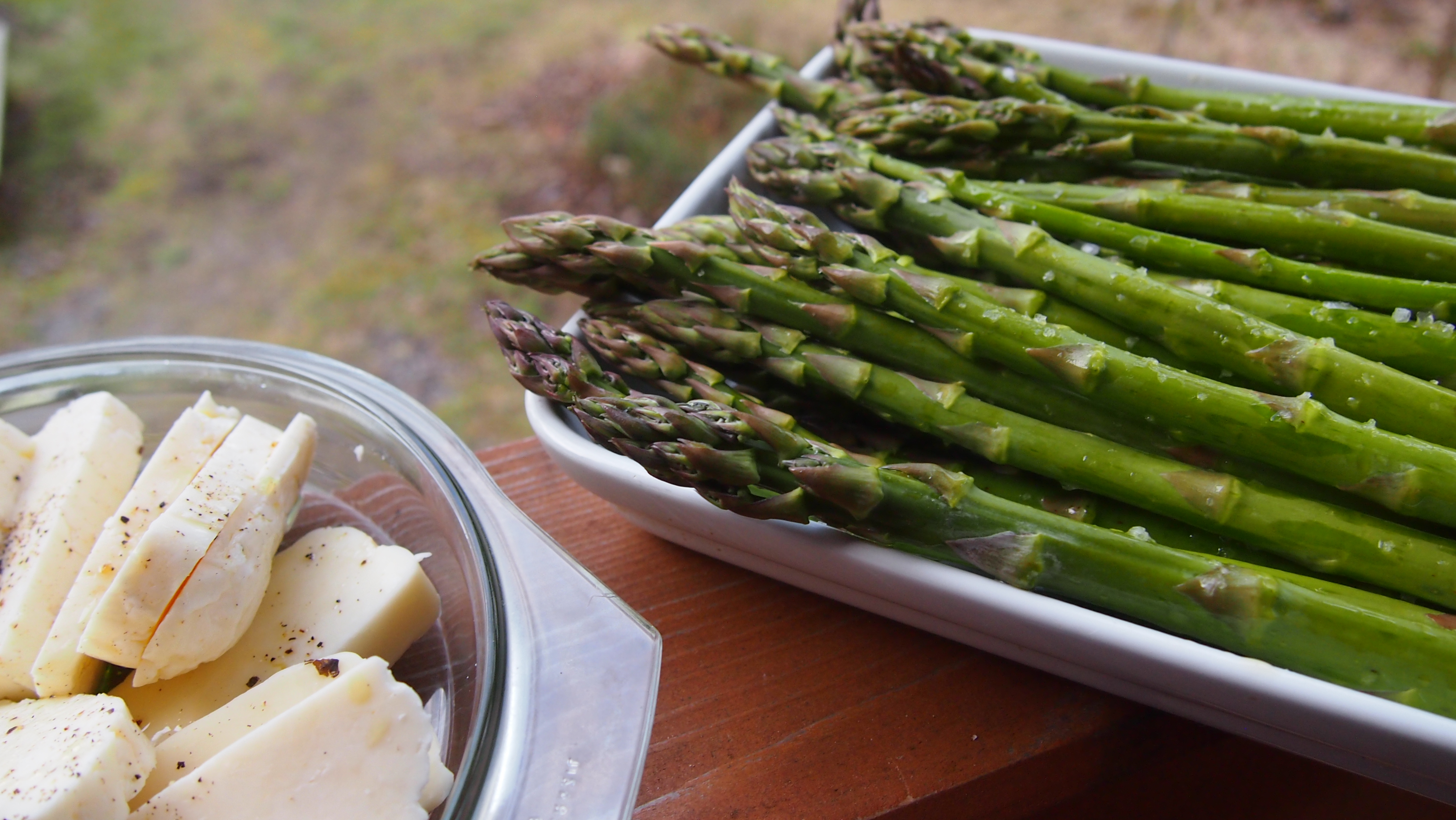 Halluomikanalle sopii jos jonkinmoiset lisukkeet, vaikkapa vihersalaatti avocadolla, uudet perunat, rosmariiniset lohkoperunat, grillatut kasvikset jne. Meillä oli tällä kertaa juurikin tuoreella ruohosipulilla maustettua vihersalaattia avocadolla ja verkkomelonilla, sekä grillattua parsaa ja parmesania (ja ei, juustoa ei voi olla liikaa 🙂 ). Ihana ja jotenkin niin kesäinen grilliherkku.