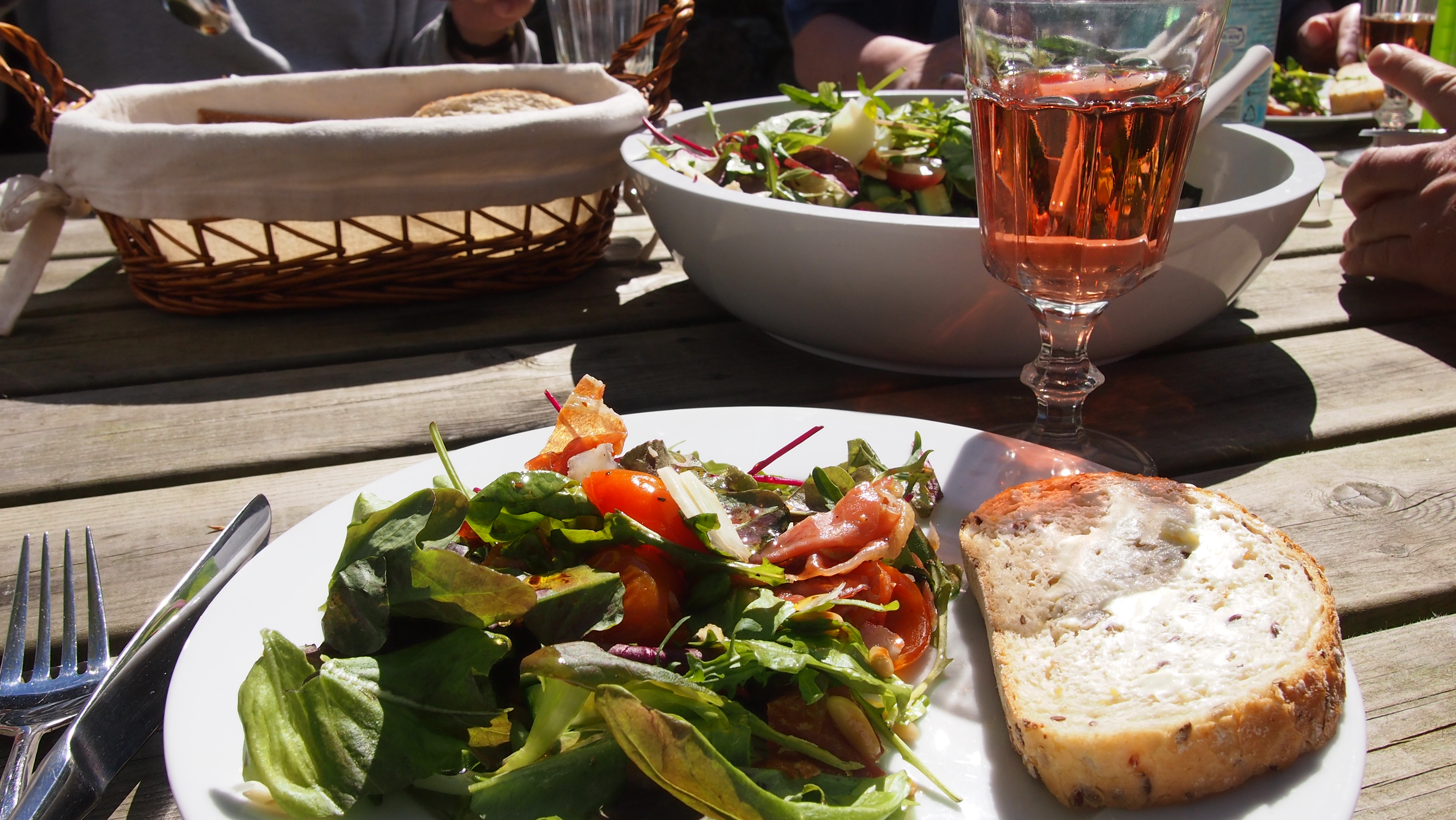 Kylläpä kesäsäät tuntuu ihanalta! Saaressakin voi olla jo shortseissa, vaikka kylmä meri liplattaa vieressä. Huippua! Päivä kului mukavasti pihahommissa, istutettiin urakalla pihapiiriin kesäkukkia, kylvettiin yrttilaatikot ja täytettiin uutta yrttilaatikkoa kompostimullalla. Ihanaa hommaa! Lounaaksi pyöräytettiin rapea parmankinkkusalaatti, joka saatiin nautsikella ulkona lämpimässä auringonpaisteessa. Täydellistä! Postauksenkin sain tehdä ihanassa aamupäiväauringossa laiturilla. Voiko paljon parempaa ollakaan?