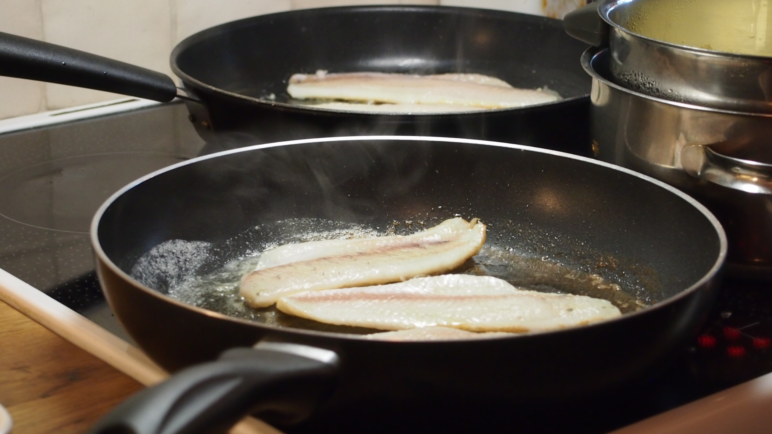 Napsauta perunat kiehumaan ja ala samaan aikaan valmistamaan hollandaisea. Erottele munan keltuaiset kattilaan. Valmista kastike vesihauteessa, meillä laitetaan pienempi kattila roikkumaan isomman kattilan reunoista veteen. Vatkaa keltuaiset, suola ja valkopippuri sekaisin kunnes seos sakenee. Lisää voi nokareina ja vatkaa kokoajan. Kaada sekaan vesi ja kuumenna edelleen. Lisää lopuksi situruunanmehu. Sekoita hiljaisella lämmöllä kastike kirkkaaksi ja tasaiseksi. Tarkista maku. Suolaa ei kannata laittaa alussa kovinkaan reilusti, sillä voi on sen verran suolaista, että siitä tulee lähes tarpeeksi makua kastikkeeseen omasta takaa. Kun perunat ja kastike ovat valmiita on aika paistaa kalat. Nostimme hollandaisen pois liedeltä, mutta pidimme sitä vielä vesihauteessa ja sekoitimme kokoajan ettei se juoksetu.