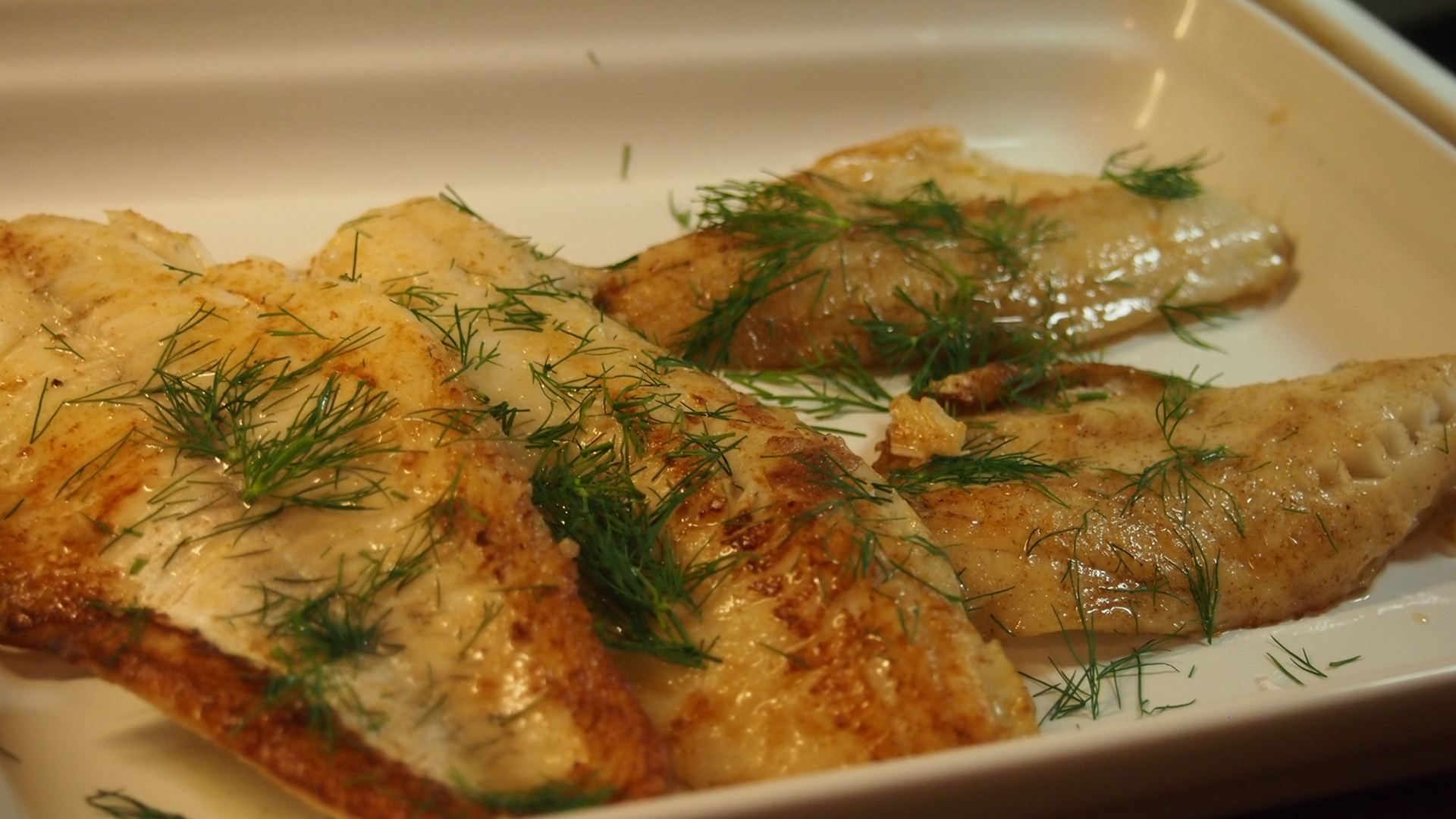Suolaa ensin kuhafileet. Lisää pannulle kunnon nokare voita ja kun voi tirisee, lisää kalat pannulle. Paista fileitä noin minuutti per puoli, kalan koosta riippuen. Kalaa ei saa ylikypsentää, ettei siitä tule kuivaa. Joten kun kalan pinta saa kaunista väriä, se on aika kääntää. Ripottele valmiiden kalafileiden päälle tuoretta tilliä ja tarjoile heti yllämainittujen herkkujen kanssa. Kuha vastasi odotuksia ja enemmänkin, teki mieli nuolla lautanen puhtaaksi 🙂