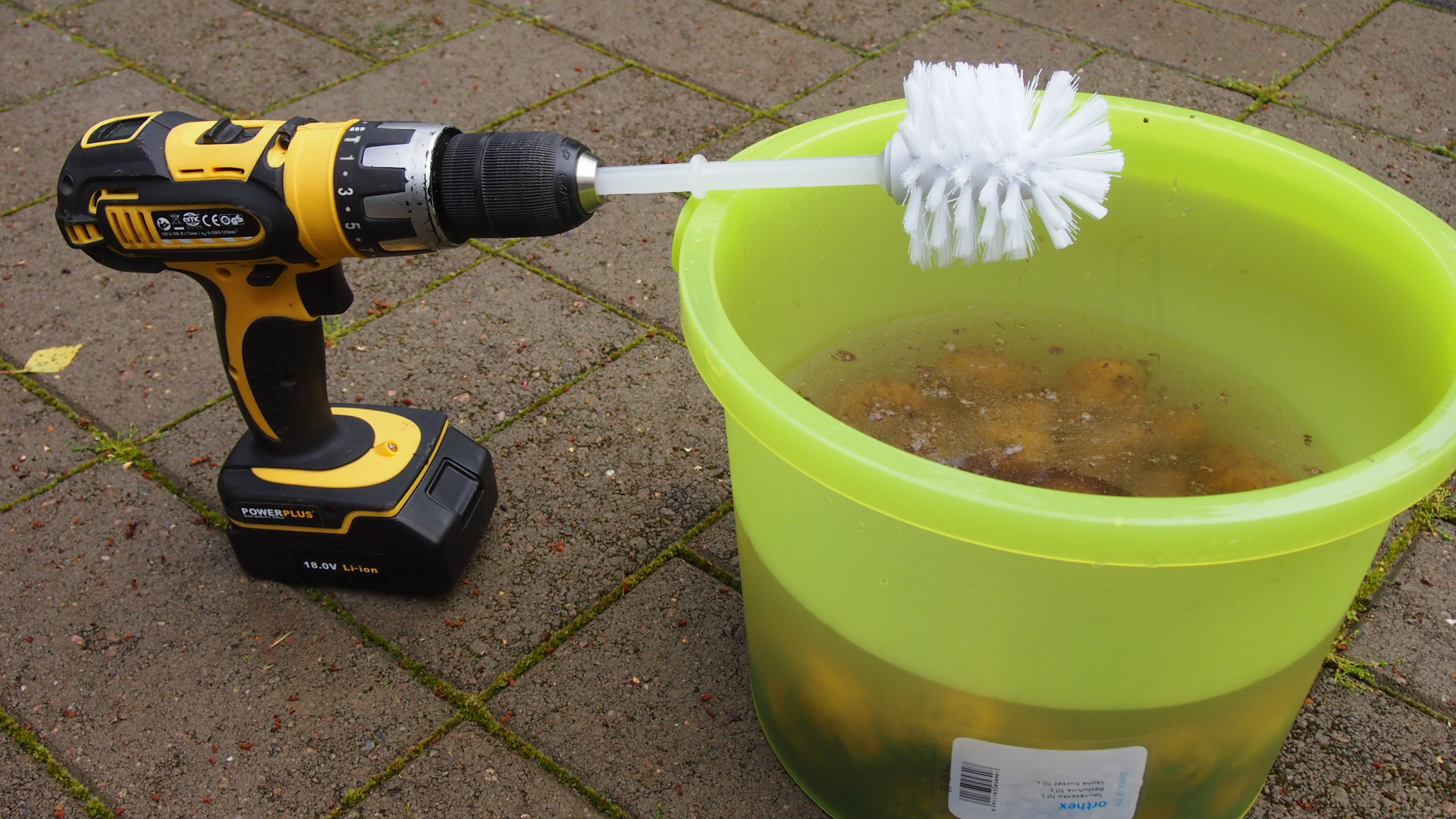 Pese perunat ja valmista salaatti valmiiksi. Ennen mökkireissua tuli puheeksi eräs you tube -video, jossa oli pesty uusia perunoita ämpärissä akkuporakoneeseen kiinnitetyllä vessaharjalla. Käyttämättömällä tietenkin 🙂 Idea jäi mielenpäälle ja päätettiin yhdessä, että onhan tätä testattava. Kauppareissulla mukaan napattiin uusi vessaharja ja ei kun testaamaan. Ja se toimi! Iso määrä perunoita tulee kyllä helposti puhtaaksi. Hassua, mutta pakko suositella 🙂