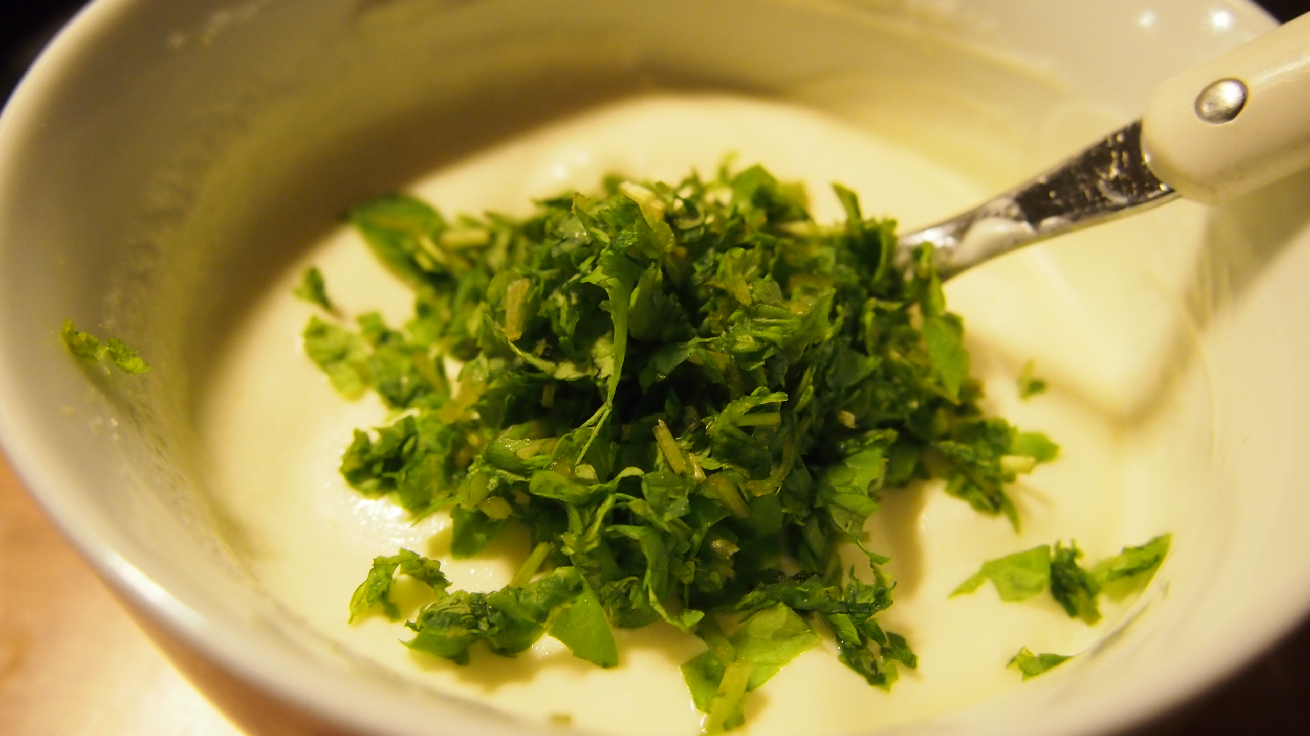 Lihojen kanssa söimme uusista perunoista valmistettuja kermaperunoita, salaattia sekä minttu-jogurttikastiketta. Aloita ruuan valmistus ottamalla lihat huoneenlämpöön vähintään puolitosta tuntia ennen grillaamista. Valmista ensin minttu-jogurttikastike. Resepti tähän on peräisin Auringon maku -kirjasta, alkuperäiseen versioon on lisätty vain minttu.