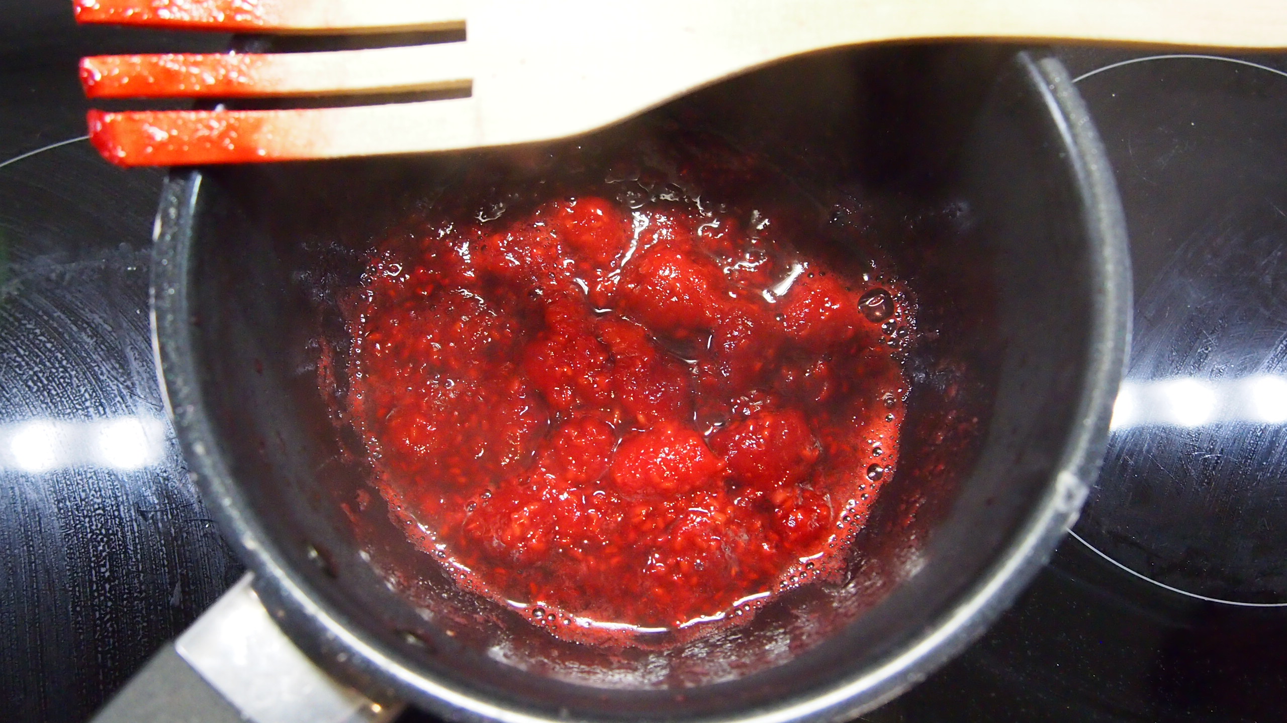 Keitä vadelmia tilkkasessa vettä muutaman minuutin ajan ja anna jäähtyä jääkaappikylmäksi. Lisää vadelmat ja turkinpippurirouhe loppuun jäätelomassaan ja sekoita kevyesti. Nosta massa vuokaan, kelmuta ja pakasta. Seuraavana päivänä pääsee herkuttelmaan ihanalla, kotitekoisella jäätelöllä, nam!