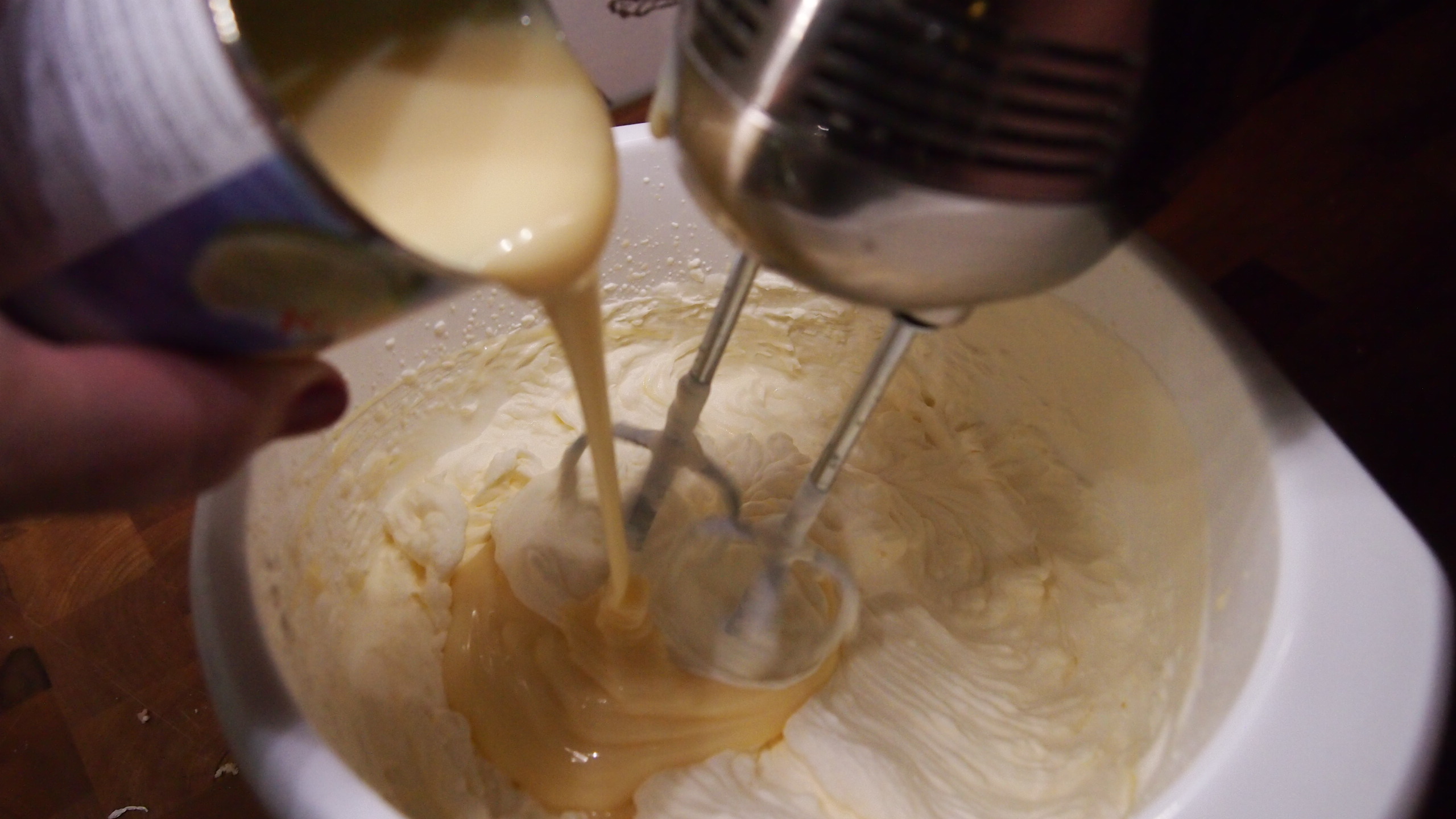 Vatkaa kerma kovaksi vaahdoksi. Sekoita kondensoitu maito vatkaimella hiljaa sekaan niin että massa on tasaisesti sekoittunut. Laita jäätelömassa 1,5 litran vuokaan. Kelmuta vuoka ja anna pakastua yön yli. Nosta huoneenlämpöön hiukan ennen tarjoilua.