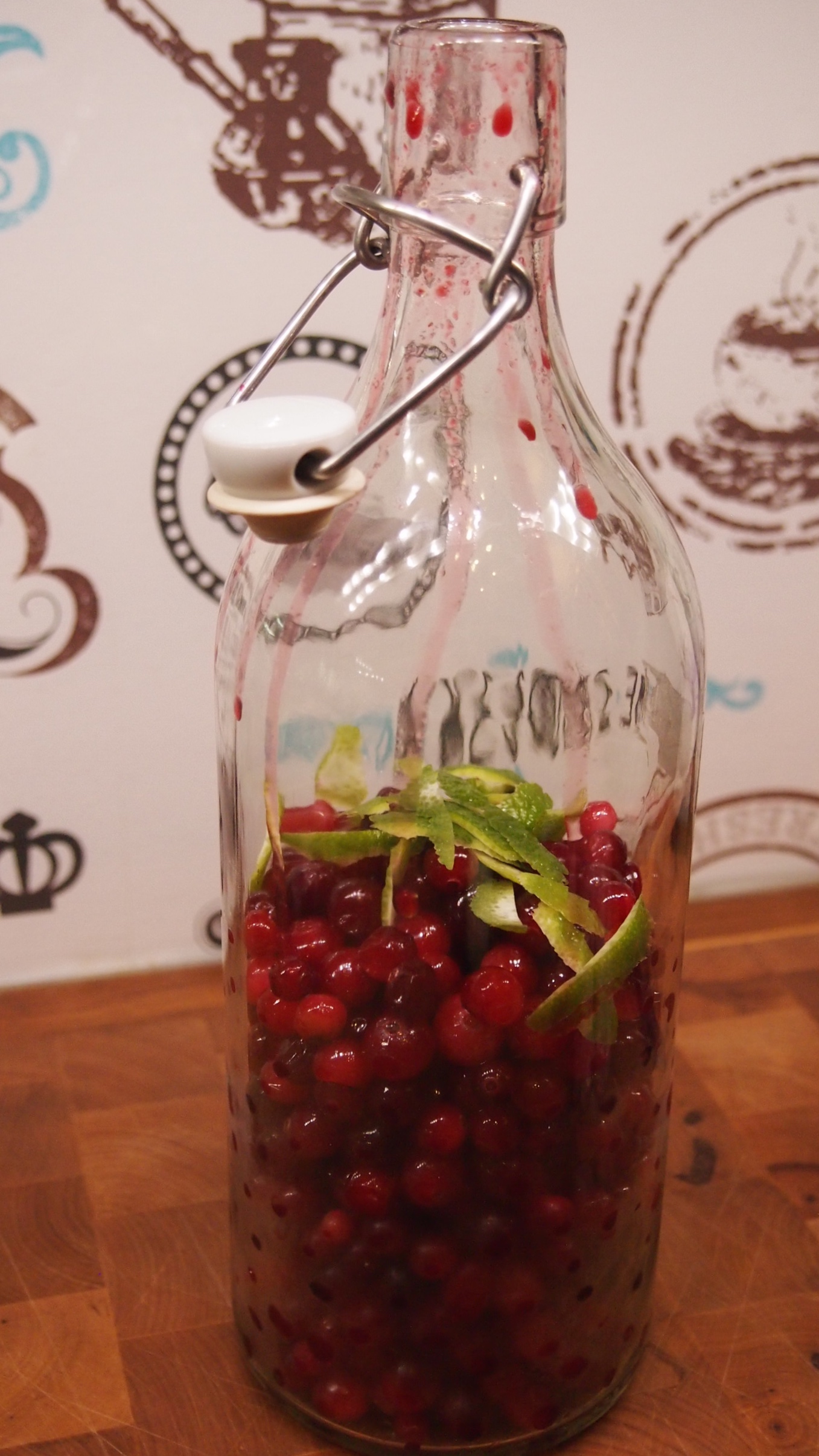 Pian on kaksi viikkoa Jouluun ja on aika valmistella raikas snapsi Joulupöytään. Snapsin maustaa raikkaat, Joulunpunaiset karpalot ja pirteä lime. Ohje on peräisin sisareltani ja se maistuu pakkaskylmänä usein myös niille, jotka eivät niin perinteisestä snapsista välitä. Snapsi sopii värinsäkin puolesta täydellisesti Joulupöytään, mutta on tämä resepti todettu toimivaksi myös rapujuhlissa 🙂