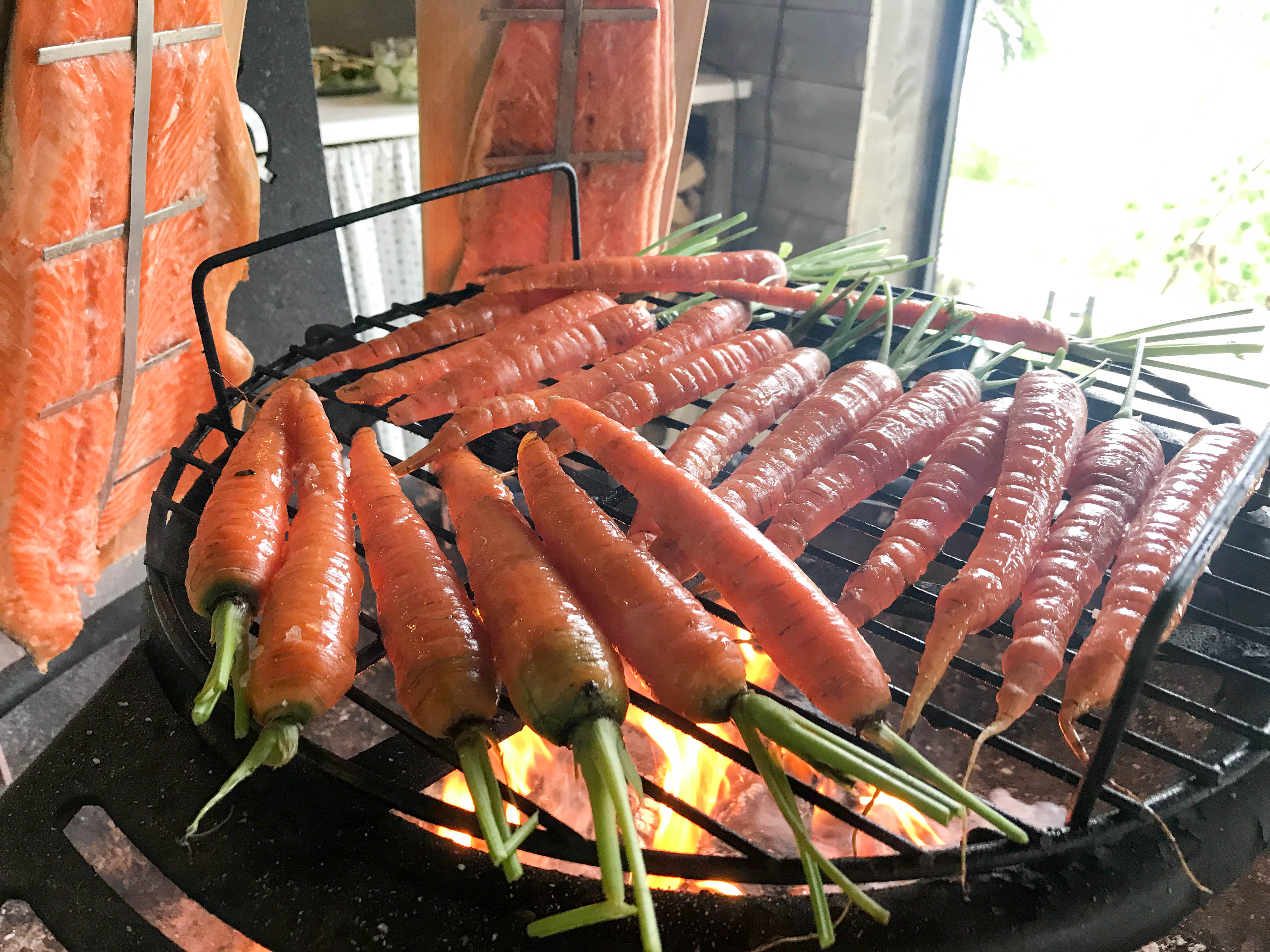 Kesäporkkanoiden sesonki on juuri alkamaisillaan. Micke oli työreissussa Ruotsissa, jossa illallisella oli tarjolla mm. grillattuja kesäporkkanoita ja minä taas satuin näkemään aamuteeveessä kun siellä grillailtiin samaisia kesäporkkanoita 🙂 Yhteistuumin tästä vakuuttuneena porkkanat päätyivät osaksi Juhannusbuffaamme ja niistä piti kaikki! Porkkanagrillailut eivät todellakaan jää tänä kesänä yhteen kertaan. Ai että miten olivatkin hyviä!