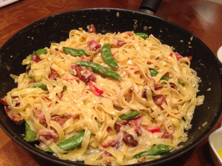 Kun haluat herkutella syntisen hyvällä pastalla, tämä on se pasta. Ihana perjantairuoka, syntyy kohtuu vaivattomasti ja nopeasti ja varmasti palkitsee raskaan viikon päätteeksi.