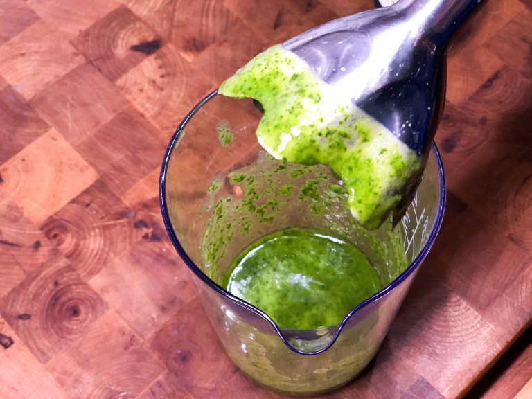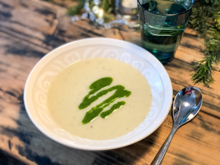 Mustajuurikeitto ja rucolaöljy