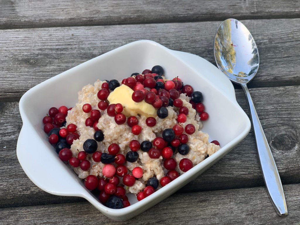 Syksyn saapuessa ainakin minun alkaa tekemään enemmän mieli puuroa. Riisipuuro on oma ehdoton suosikki, mutta myös uunissa haudutettu ohrapuuro on ihanaa. En olekaan tätä hetkeen tehnyt, mutta nyt tänä syksynä tätä on tehty meillä jo useamman kerran. Tämän ohjeen kuvat on napattu mökillä vielä silloin kun metsästä pääsi poimimaan tuoreita marjoja suoraan puuroon – parasta! Ja ai että tuo marjakuvakin näytti niin ihanan pirteältä tällaisena pimeänä marraskuun päivänä, joten tästä postauksesta saa toisenlaistakin energiaa. Ohrapuuro on mielestäni parasta marjojen kanssa tai sitten marjakeiton kanssa nautittuna – löysin itselleni uuden Valion vadelma-persikkakeiton ja se toimi tämän puuron kanssa täydellisesti!