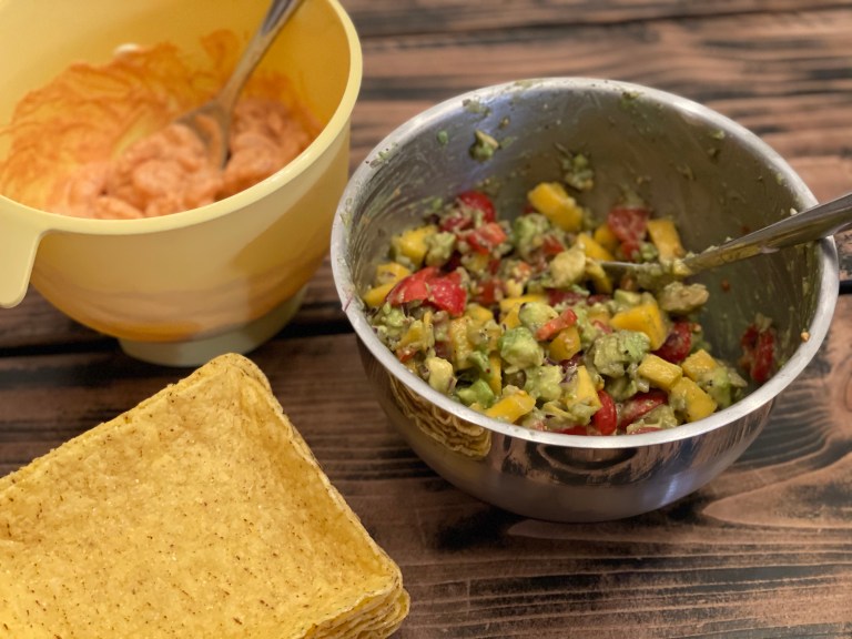 Valmista katkaraputäyte. Sulata ja valuta katkaravut pakkauksen ohjeen mukaan ja hienonna ne veitsellä. Pehmennä tuorejuusto ja lisää joukkoon ranskankerma. Mausta suolalla, mustapippurilla, hienonnetulla tillillä ja sitruunamehulla.