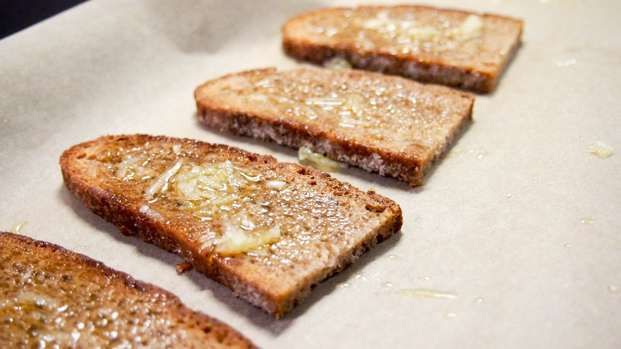 Hienonna saaristolaisleipä veitsellä tai tehosekoittimessa karkeaksi rouheeksi. Sulata voi ja sekoita se leipämurujen joukkoon.