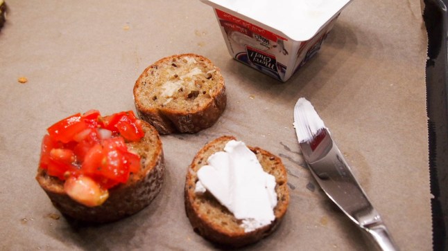 Valmista lohitäyte. Pehmennä tuorejuusto ja lisää joukkoon ranskankerma. Leikkaa kylmäsavulohi pieniksi kuutioiksi ja lisää seokseen. Kuori ja hienonna punasipuli täytteen joukkoon. Mausta suolalla, mustapippurilla ja sitruunamehulla.