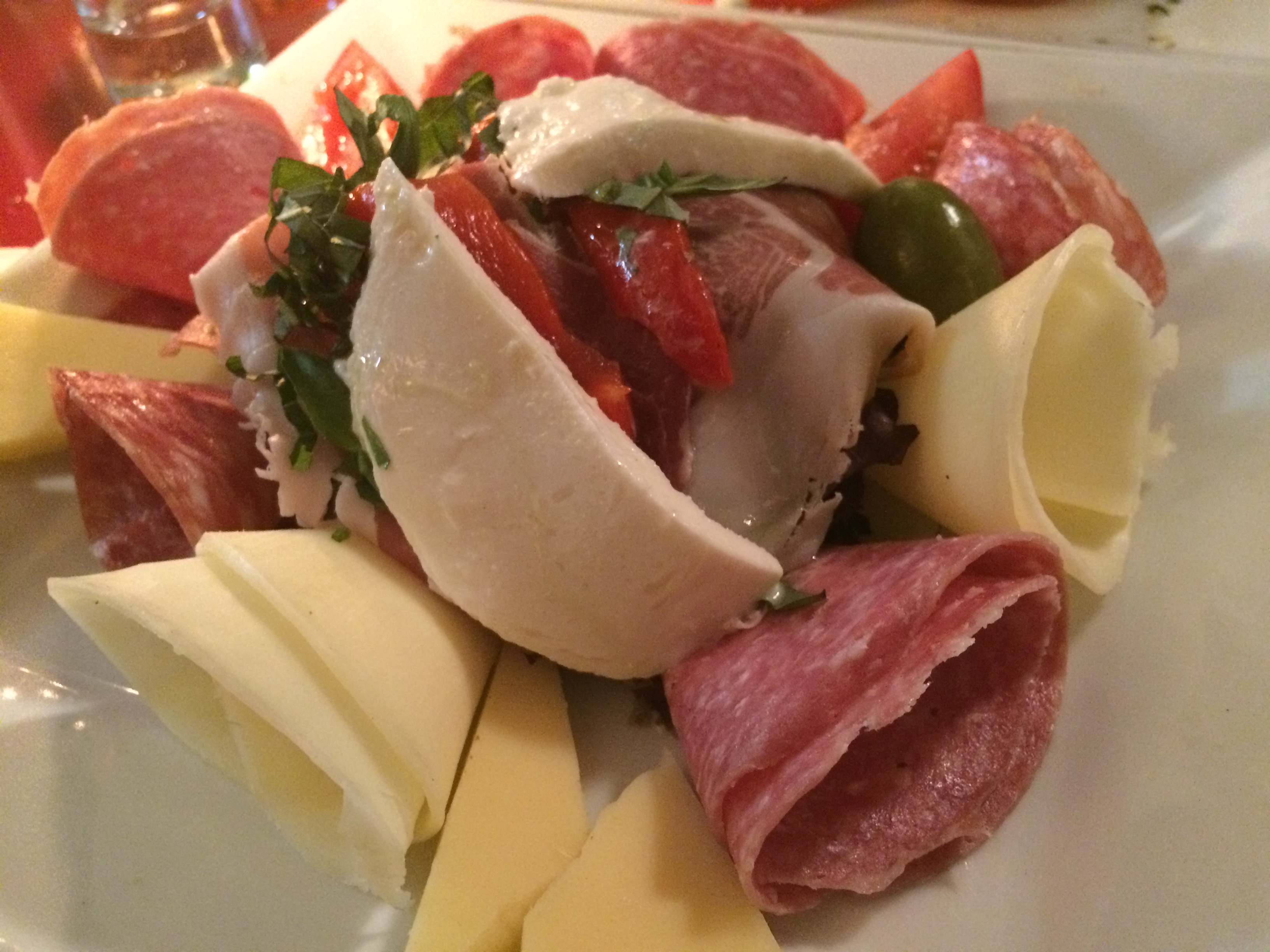 Little Italyn ravintolat keskittyvät Mulberry streetille. Illalla kadulla on ihana tunnelma kaikkine valoineen ja vieri vieressä olevine ravintoloineen. Katua kävellessä tuntuu että on melkeinpä sama mihin ravintolaan menet, kaikki vaikuttaa perusvarmoilta italalaisilta. Meillä ei tänne mitään erityistä suositusta ollut, joten valitsimme Da Gennaron sen ison terassin ja väkimäärän perusteella. Täällä oli myös lounaalla paljon ihmisiä. Palvelu oli erittäin ystävällistä ja ruokakin perusvarmaa italaialaista. Ei mikään tajunnanräjäyttävä, paras italialainen ikinä, mutta kyllä tästäkin tykkäsimme. Herkuttelimme alkuun antipasto -lautasella ja tomaatti-mozzarellasalaatilla, pääruuaksi testasimme pasta Carbonaraa ja pizzaa.