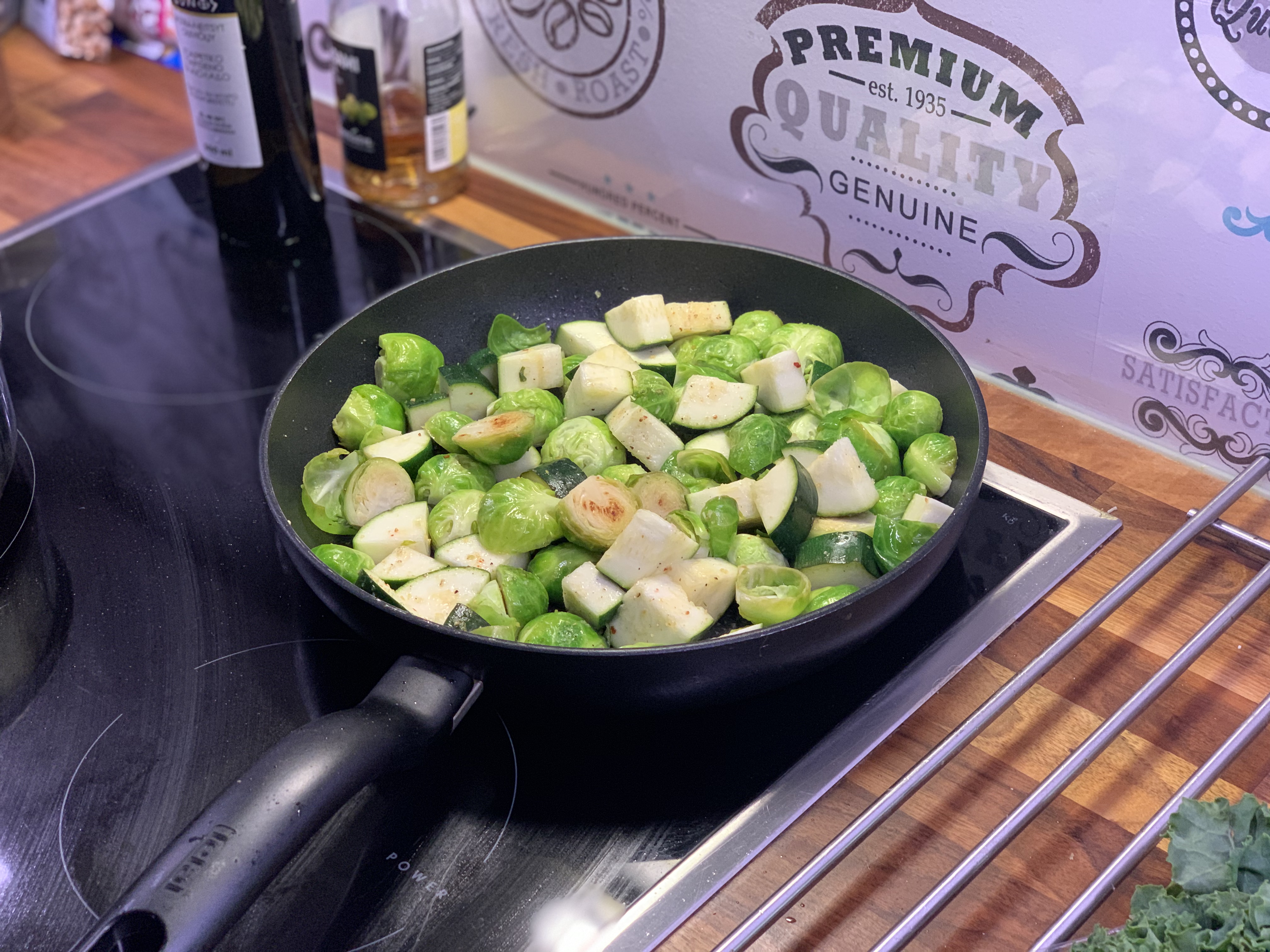 Seuraavaksi ajattelimme kokeilla tätä settiä perunan kanssa. Perunat ohueksi viipaleiksi ja uunipellille kysymään oliiviöljyn ja suolan kanssa. Ja muuten sama setti sitten valmiiden perunoiden päälle. Voisi toimia!