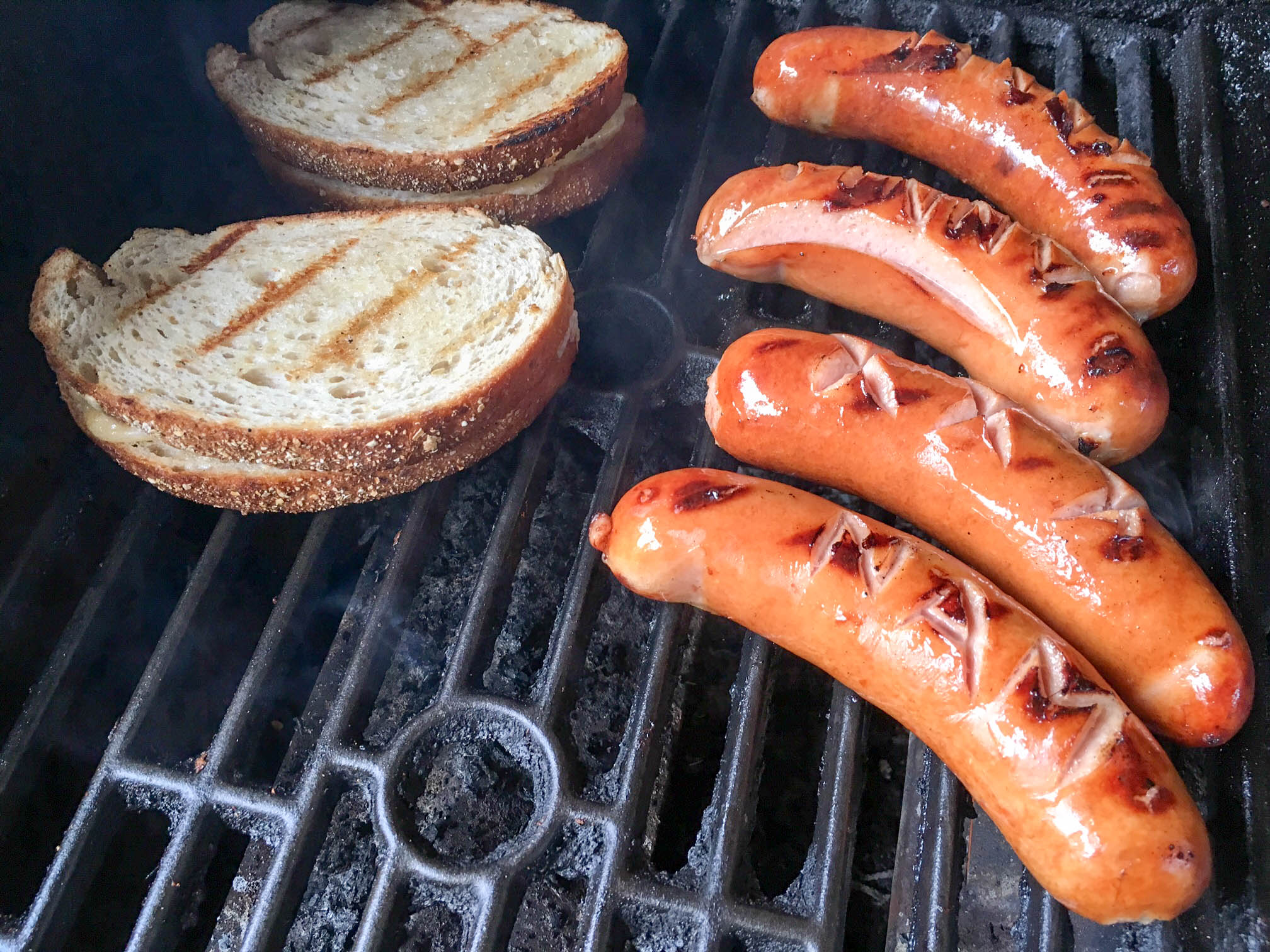 HIenonna valkosipuli ja sekoita se oliiviöljyn joukkoon. Sivele leipäsiivut oliiviöljyllä. Aseta juustosiivut leiville ja paina kaksi leipää tiivisti yhteen juustopuolet vastakkain. Leikkaa tomaatit ja kurkku paloiksi ja hienonna punasipuli sekä ruohosipuli. Laita tomaatit, kurkut, sipulit ja rucola salaattikulhoon. Valmista salaatinkastike sekoittamalla ainekset yhteen ja lisää se salaattiin. Grillaa seuraavaksi juustoleipiä kuumassa grillissä noin minuutti per puoli tai kunnes juusto on sulanut ja leivät ovat kauniin ruskeita. Anna leipien jäähtyä hetki ja kuutioi niistä pieniä paloja. Lisää leipäkuutiot salaattiin, viimeistele salaatti kapriksilla ja tarjoile heti.