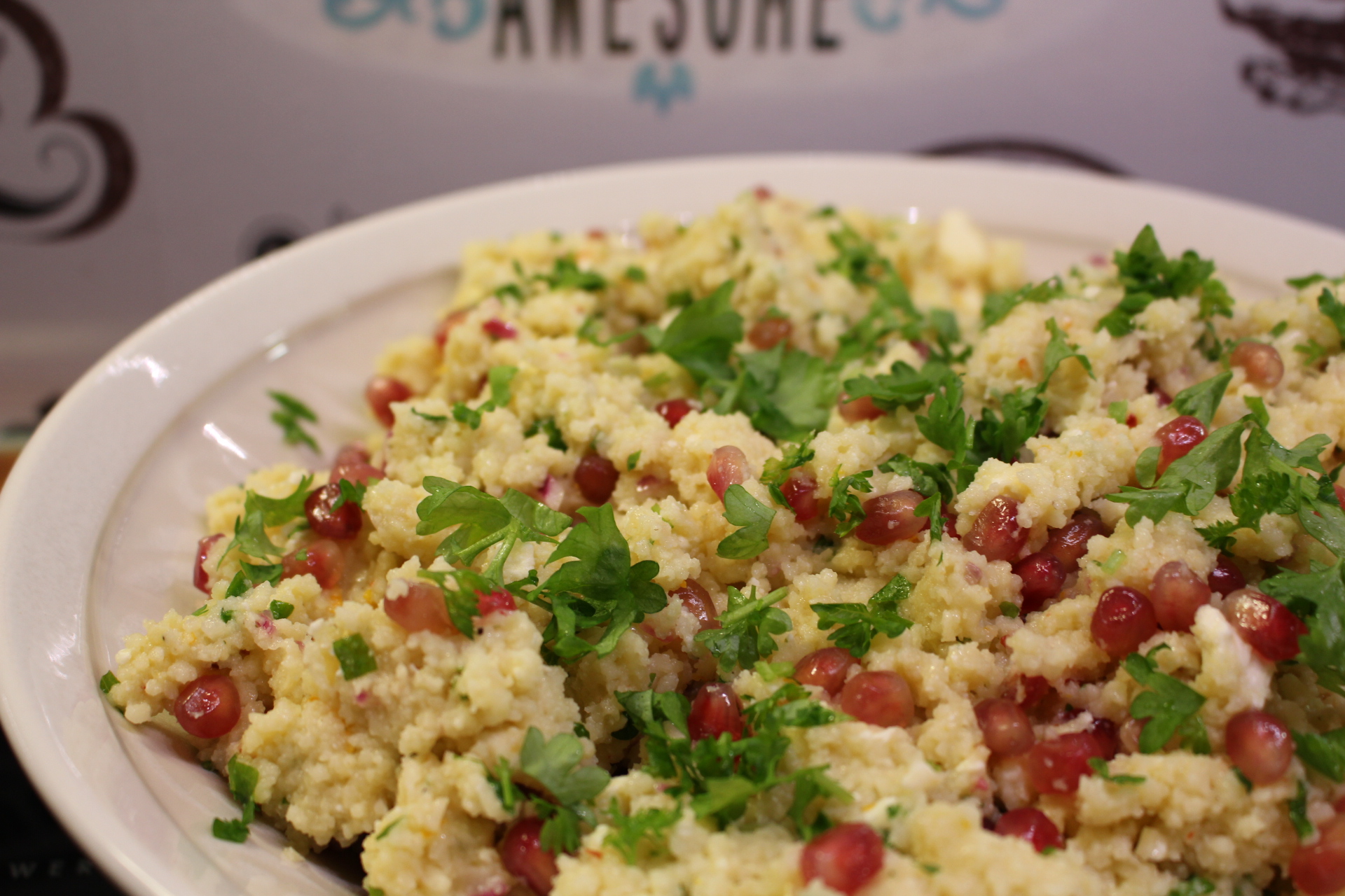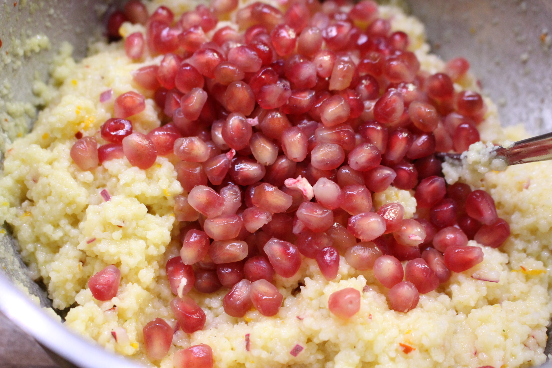 Granaattiomenakaritsa ja lehtikaali-fetapaistos