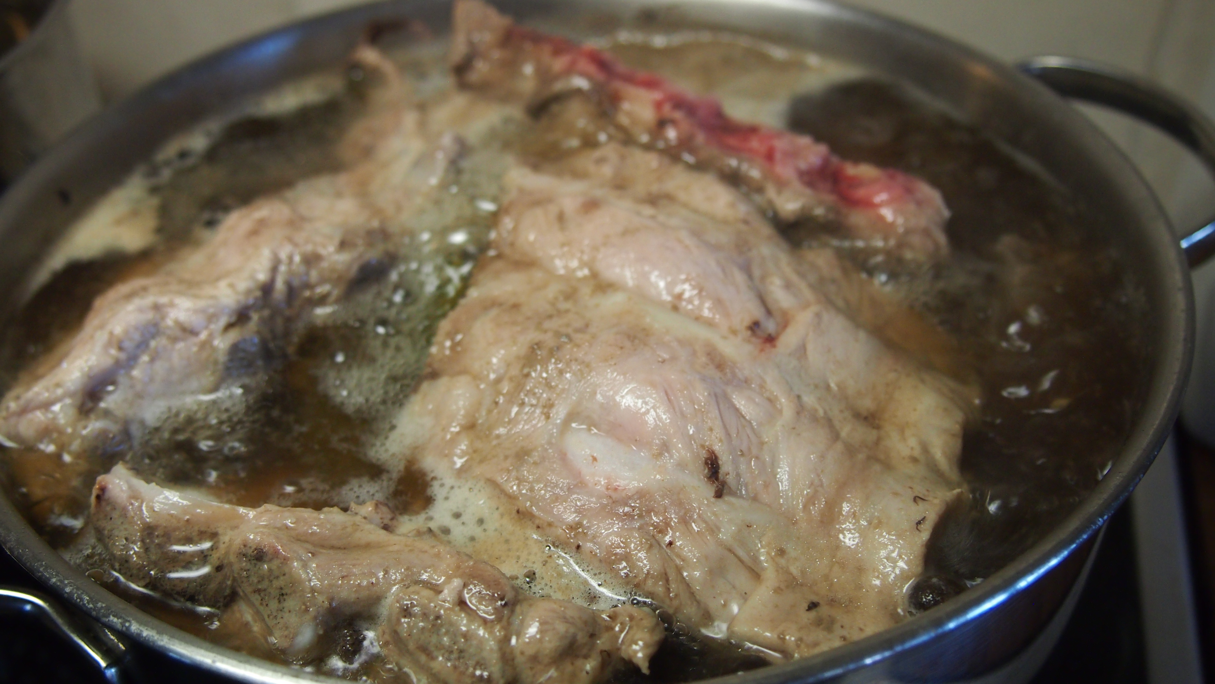 Alkuperäisestä ohjeesta poiketen olemme lisänneet keitinliemeen myös muutaman kokonaisen maustepippurin antamaan lisämakua.