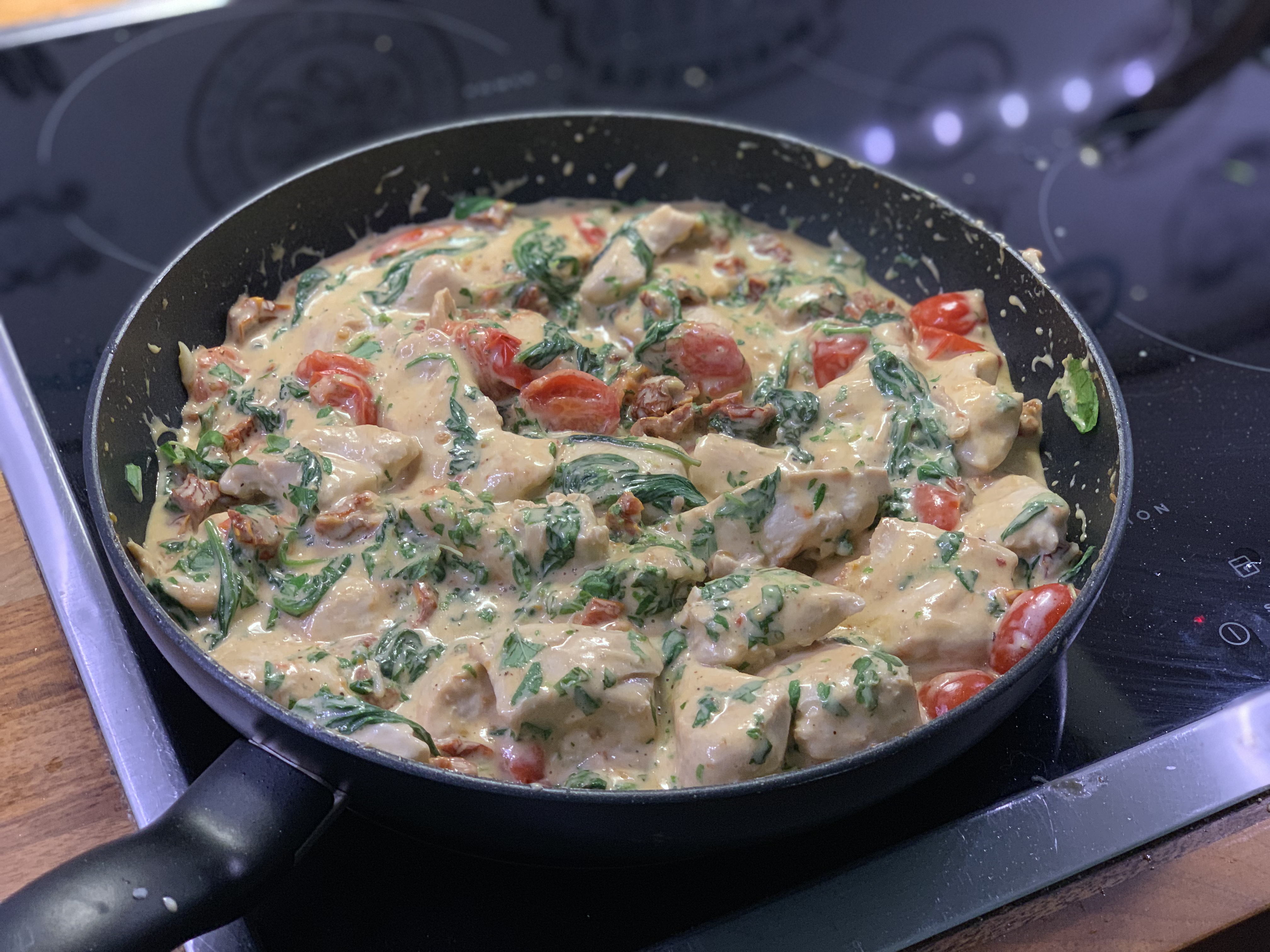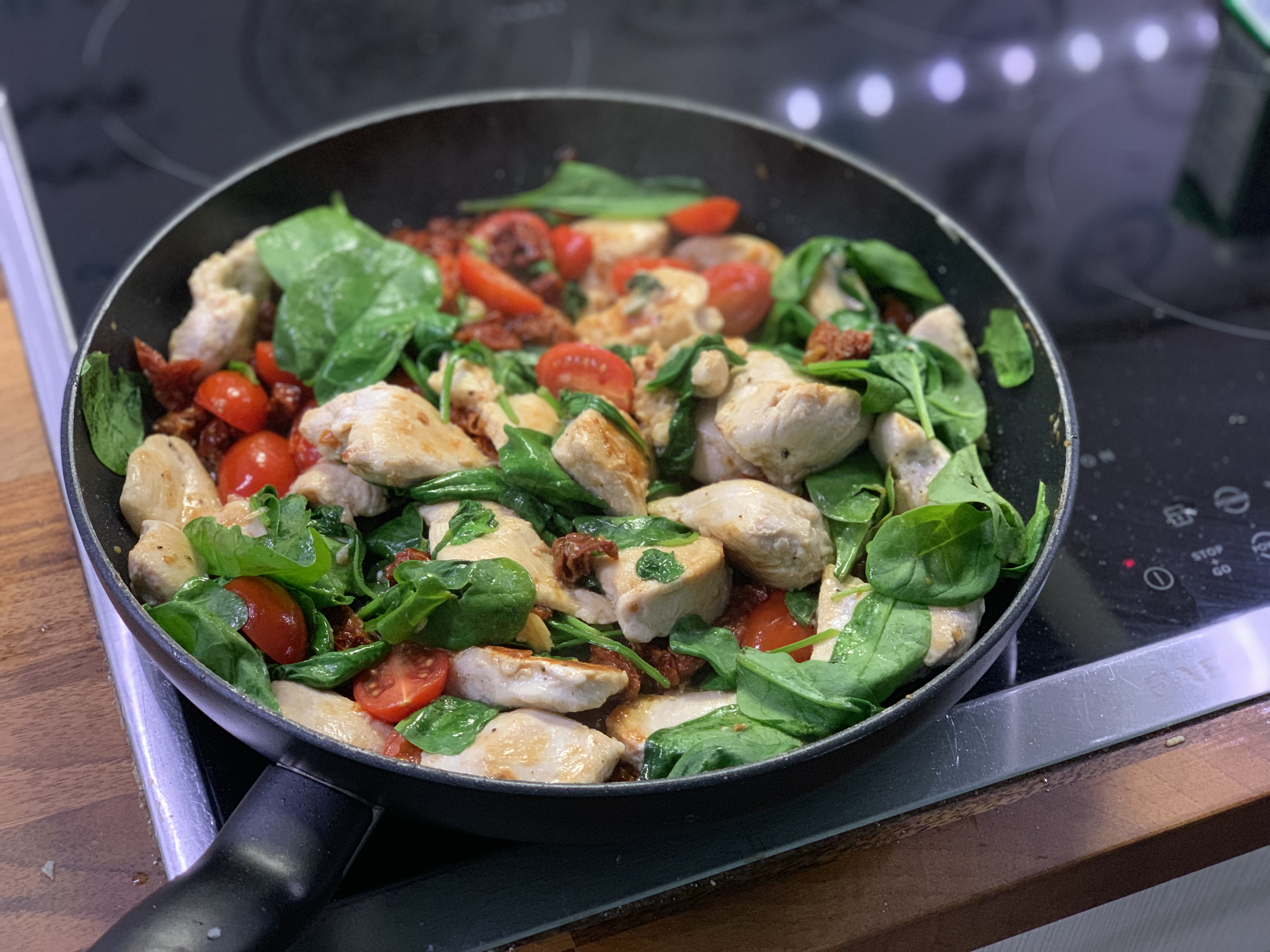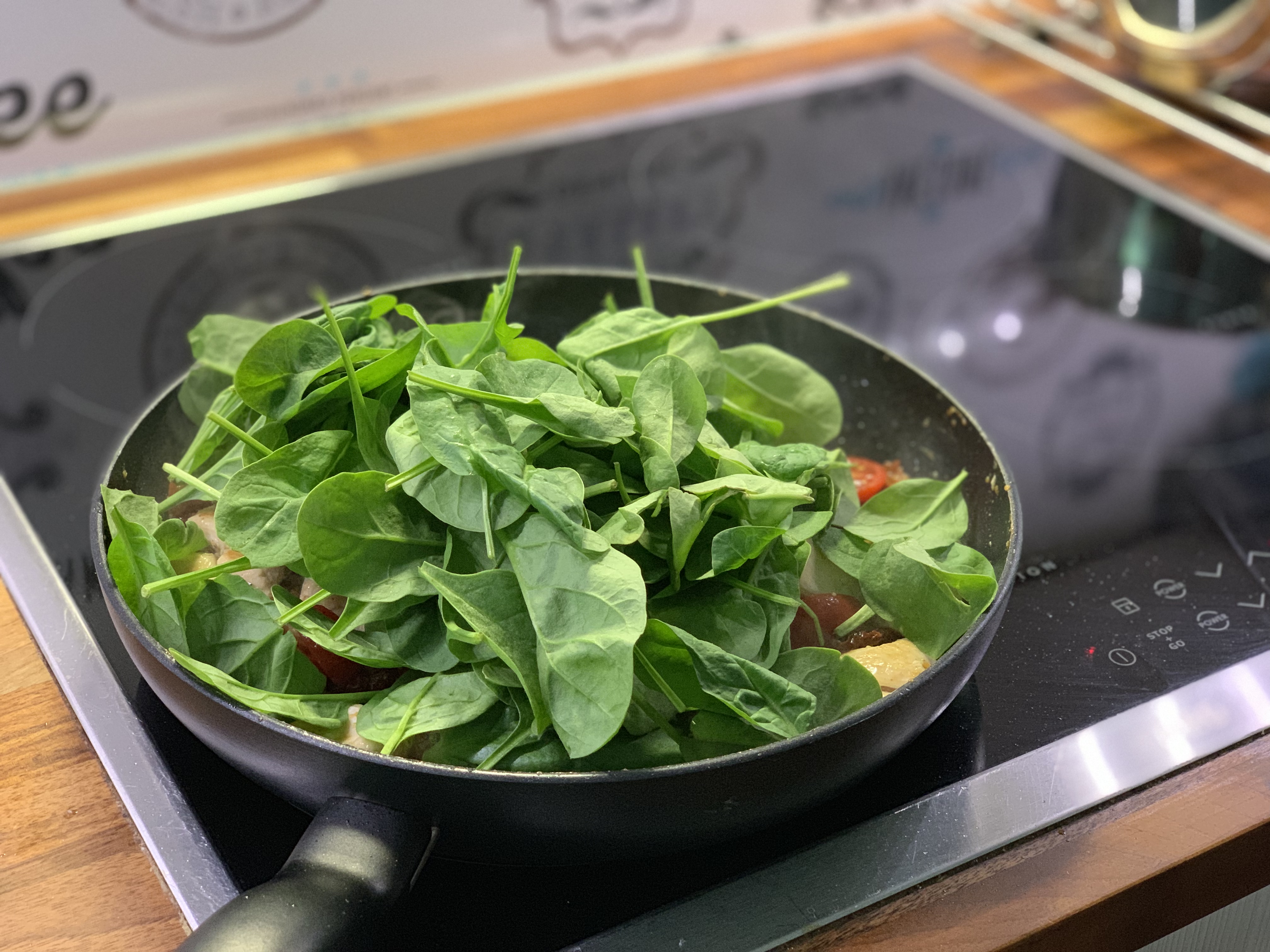 Lorauta uunivuuan pohjalle vähän oliiviöljyä ja laita kanan fileet uunivuokaan. Jos haluat, voit nopeasti ruskistaa kanafileiden pinnat oliiviöljyssä paistinpannulla ja nostaa ne pannulta uunivuokaan. Tämä ei kuitenkaan ole välttämätöntä.