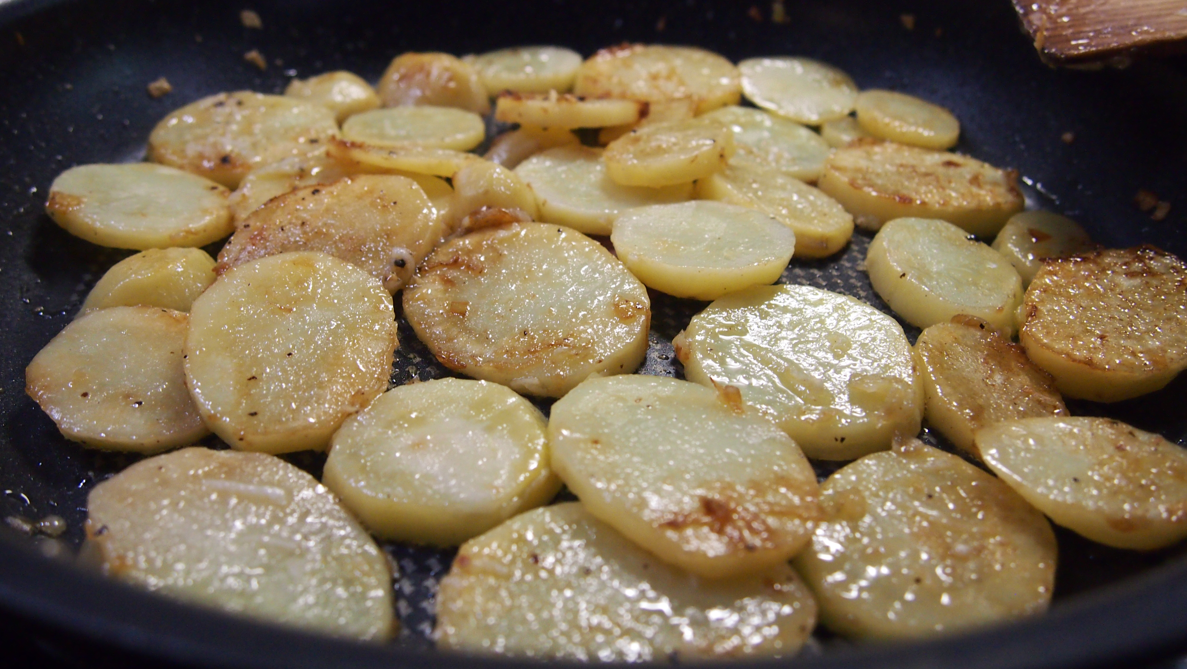 Murekkeen kypsyessä valmistimme viipaleperunat lisukkeeksi. Kuori perunat ja viipaloi ne. Laita perunaviipaleet kulhoon, lisää joukkoon raasettua valkosipulia, loraus oliiviöljyä ja loraus valkoviinietikkaa, suolaa, mustapippuria ja sekoita. Paista perunat pannulla miedolla lämmöllä niin, että ensin paistetaan viipaleita toiselta puolelta sellaiset 15 min, jonka jälkeen viipaleet käännetään. Paista vielä 5-10 minuuttia tai niin kauan että perunat ovat kypsiä. Huomioi, että perunoiden kypsyminen vie vähintään saman ajan kun mitä mureke on uunissa. Jos haluat perunoihin ihanan kirpeyden lorauta pannulle vielä ennen tarjoilua hiukan valkoviinietikkaa ja anna vetäytyä pannulla pari minuuttia. Valkoviinietikka todella viimeistelee perunoiden maun. Tämä on hyvä combo!