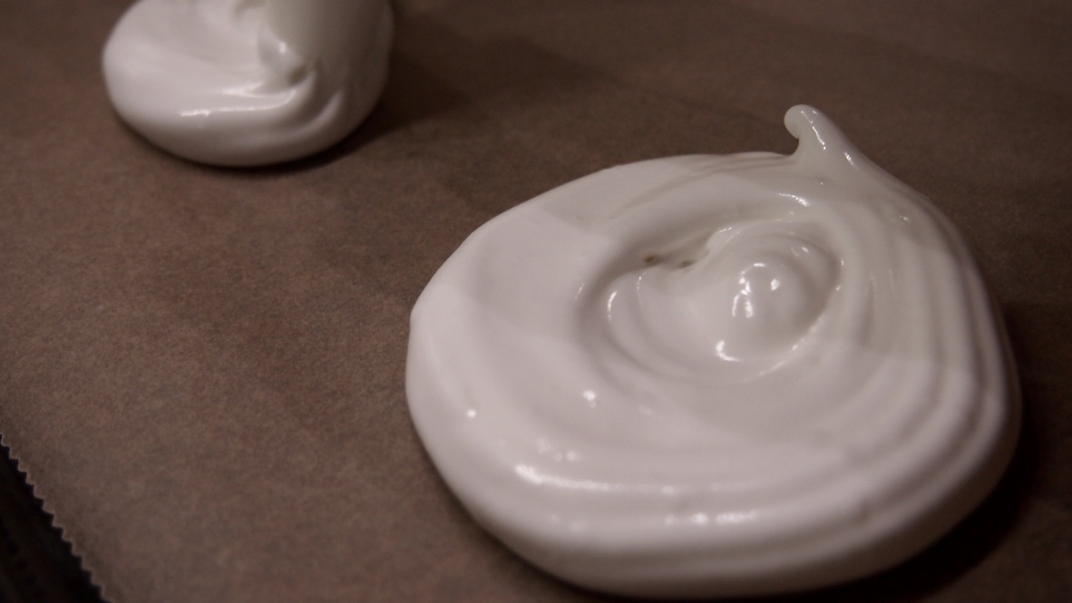 Vatkaa huoneenlämpöiset valkuaiset ja ripaus suolaa kovaksi vaahdoksi. Lisää joukkoon sokeri edelleen vatkaten. Vatkaa marenkivaahto kovaksi ja kiiltäväksi. Vatkaa lopuksi marenkimassaan maissitärkkelys ja viinietikka. Nosta marenkimassasta kahdella ruokalusikalla reiluja, noin kananmunan kokoisia nokareita leivinpaperilla vuoratulle uunipellille. Tee nokareista halkasijaltaan noin 30 cm kranssi. Itse piirsin tarjoiluastian reunat lyijykynällä leivinpaperin toiselle puolelle ja mukailin kranssin ääriviivojen sisäpuolelle. Tasoita lopuksi lusikalla hieman marengin pintaa. Kuivata marenkia 120-asteisen uunin keskitasolla 1–1 1/2 tuntia. Sammuta virta ja anna marengin kuivahtaa vielä puolisen tuntia uunin jälkilämmössä.