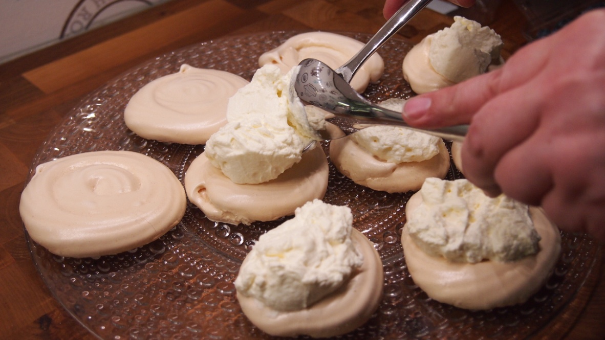 Huom! Ja vinkkikin! Kaneli on ohjeessa siksi suluissa, että se tuo vaahtoon ihanasti talvista makua ja sopii ohjeessa olevien koristeiden kanssa täydellisesti. Mutta marenkikranssi on oiva jälkiruoka vuodenajasta riippumatta! Esim. kesäversiossa jättäisin kanelin pois ja tilalle voisi laittaa vaikkapa vähän sitruunankuorta tuomaan täytteeseen ihanaa raikkautta. Sitruuna sopii täydellisesti kesäkauden marjoihin, joten kesällä koristelisin kranssin tuoreilla mansikoilla, vadelmilla sekä mintulla ja sitruunankuorella. Marenkikranssin voit tehdä valmiiksi myös vaikkapa paria päivää ennen tarjoilua. Säilytä marenki silloin kuivassa, ilmavassa paikassa. Meillä kranssi odotteli tarjoilua uunipellillä kaapin päällä.