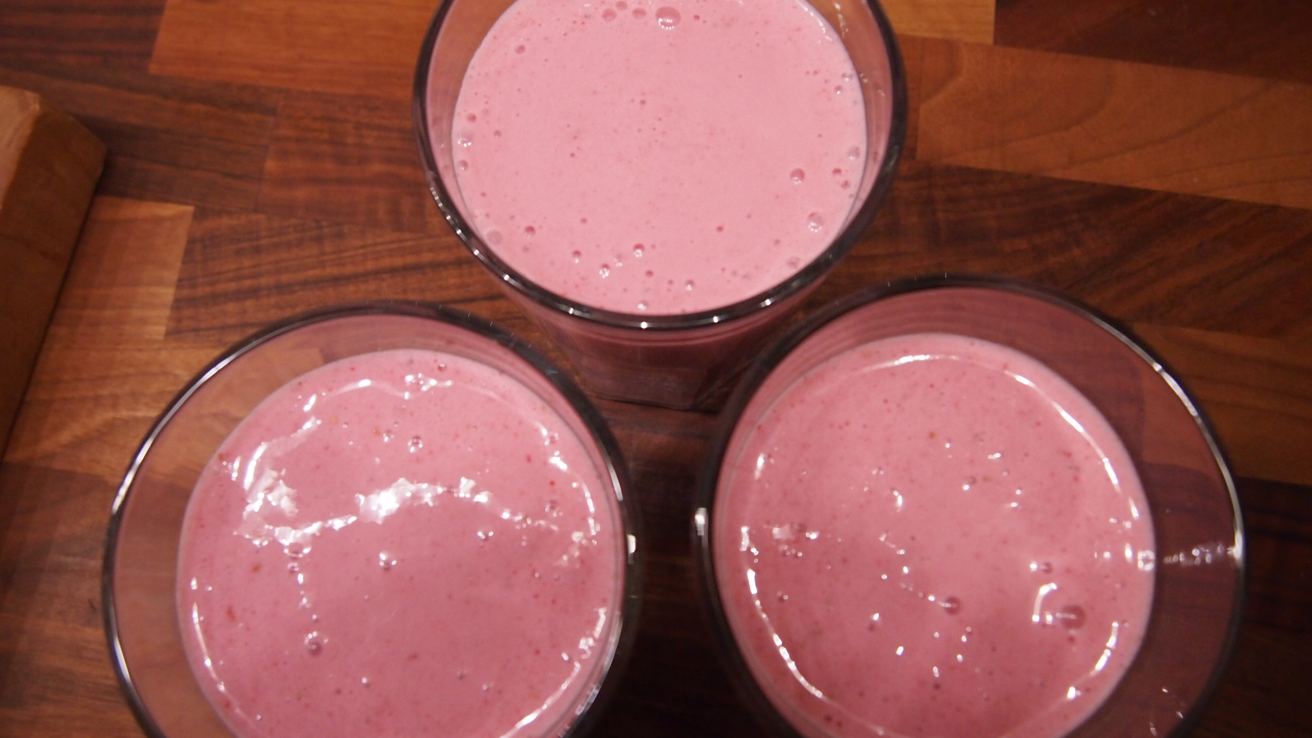 Keitä marjoja pari minuuttia samalla sekoittaen. Jäähdytä marjat jääkaappikylmäksi. Leikkaa minttu tehosekoittimeen, paloittele banaani myös joukkoon. LIsää marjat ja hunaja (Me laitettiin hiukan vajaa puoli desiä hunajaa, ettei smoothiesta tule liian makeaa. Alkuperäisessä reseptissä on tuo puoli desiä.), soseuta tehosekoittimessa. Kaada omenamehu joukkoon koneen käydessä. Pysäytä kone, lusikoi seokseen vielä jogurtti ja surrauta sekaisin. Nautitaan heti. Tykkäsimme todella pajon smoothien minttuisesta mausta!