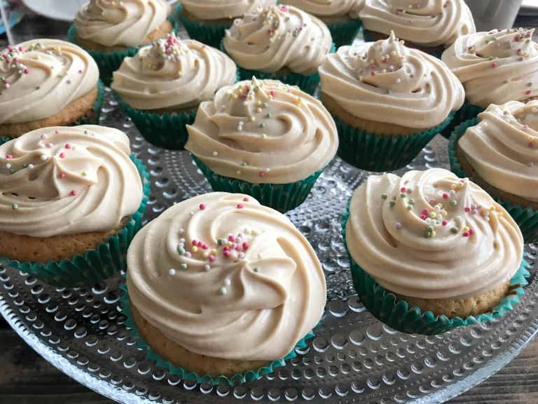 Huom! Muffinssien kuorrute kannattaa tehdä osittain valmiiksi jo edellisenä päivänä. Kerma-mokkapalamakeisseoksen on hyvä antaa jäähtyä jääkaapissa yön yli, jotta seos vatkaantuu hyvin vaahdoksi.
