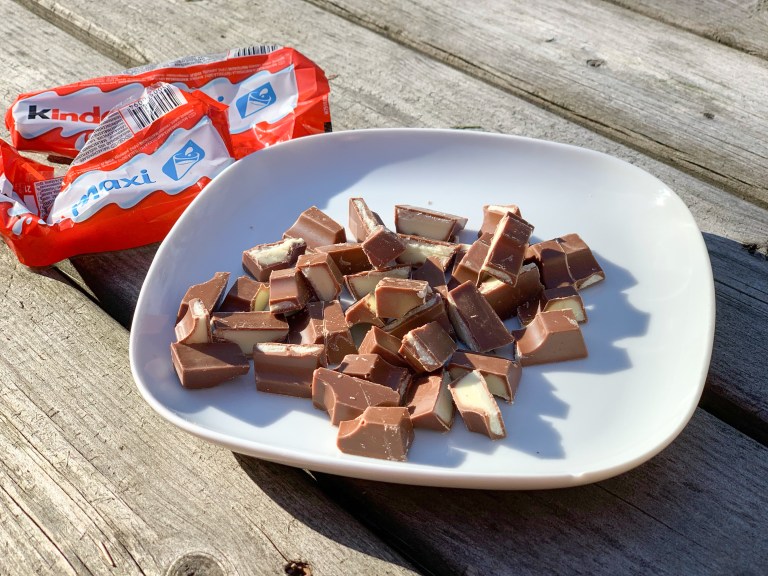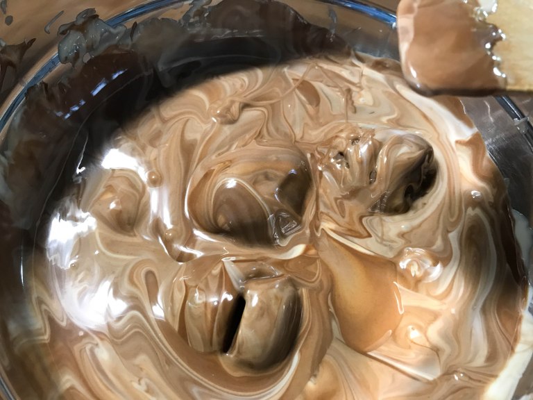 Paahda hasselpähkinät pannulla, kunnes ne alkavat saada väriä. Kumoa ne puhtaan keittiöpyyhkeen päälle ja rullaa pähkinöitä pyyhkeen välissä. Näin kuoret irtoavat pähkinöistä. Kaikki kuoret eivät tälläkään keinolla lähde, mutta se ei haittaa.