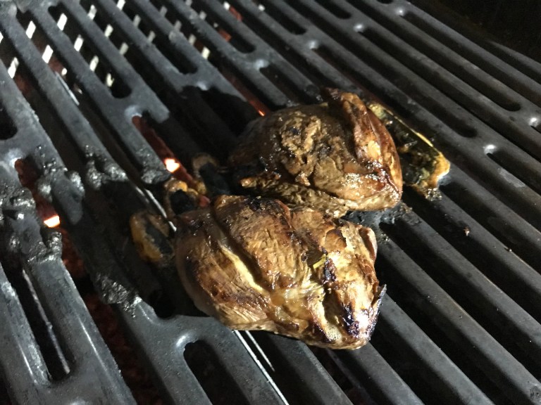 Sekoita kaikki marinadin ainekset keskenään ja laita lampaat kokonaisina fileinä marinoitumaan jääkaappiin kolmeksi päiväksi. Sekoittele niitä päivittäin, jotta lihat maustuvat tasaisesti. Muista ottaa lihat huoneenlämpöön paria tuntia ennen kypsennystä. Grillasimme lampaita avotulella noin 7 min per puoli. Avotulella grillatessa kannattaa tarkistaa lihan kypsyys, vaikka aina sanotaankin että lihaa ei saa leikata tarkistaakseen kypsyyttä. 🙂 Lammas pitää jättää mediumiksi, sillä liian kypsäksi paistettuna siitä tulee hieman sitkeää. Paistomittari on hyvä apuväline, liha kannattaa kypsentää n. 50 asteiseksi.