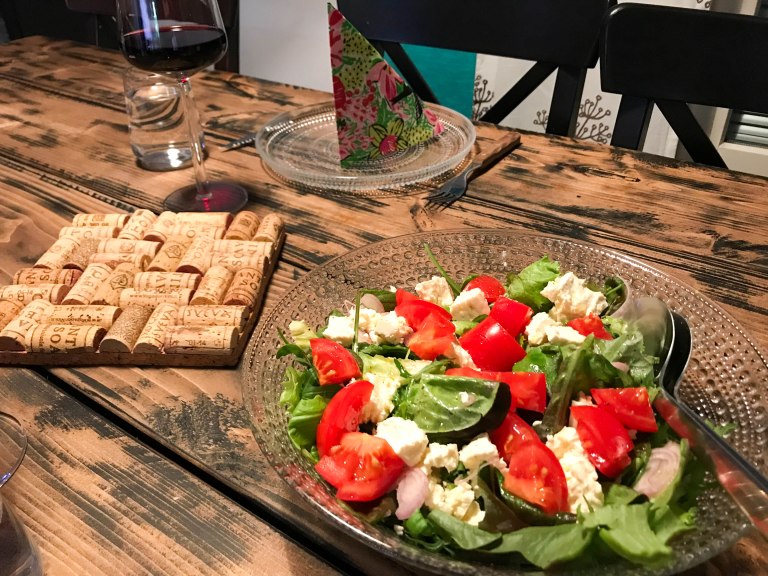 Tällä kertaa teimme lampaan kaveriksi vihersalaatin ja rosmariini-feta-perunoita, jonka ohjeen bongasin RUOKASURFFAUSTA blogista.