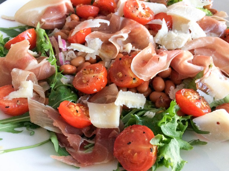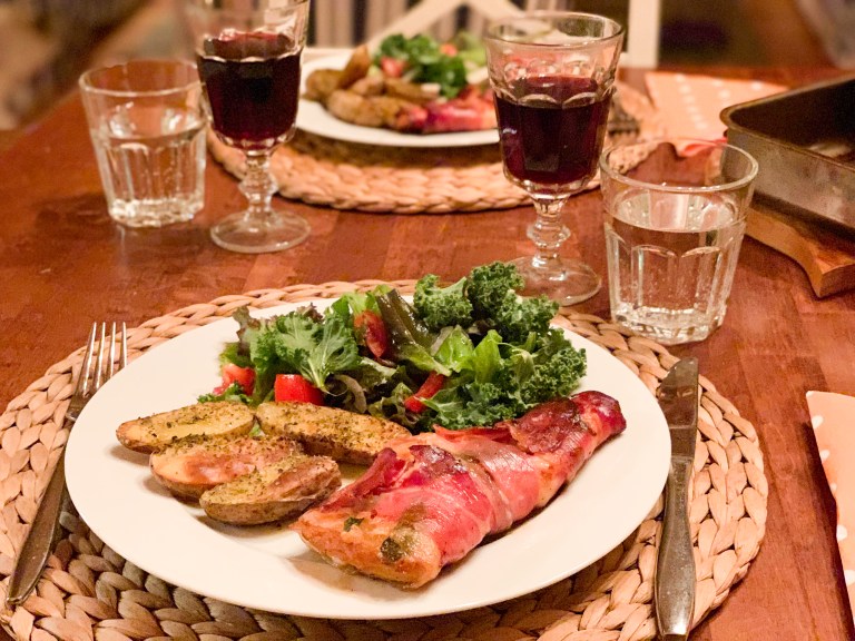 Ai että! Tämä parmankinkkuun kääritty, salvialla ja parmesanilla maustettu lohi vie minut vuosien taa illanistujaisiin ystävien kanssa. Muistelen, että tämä on yksi niistä herkuista mitä ollaan joskus tehty kaveriporukalla, kun ollaan päästy siihen ikään / vaiheeseen, että illanistujaisten ruuat ovat vaihtuneet sipseistä ja dippivihanneksista ”vähän hienompiin ruokiin”. Tässä ohjeessa on siis ihania muistoja 🙂 Salvian, lohen ja parmankinkun combo on koukuttavan hyvä ja seuraavalla kerralla kun tätä teemme, sujautan lohen päälle vielä muutaman extralehden salviaa. Nam!