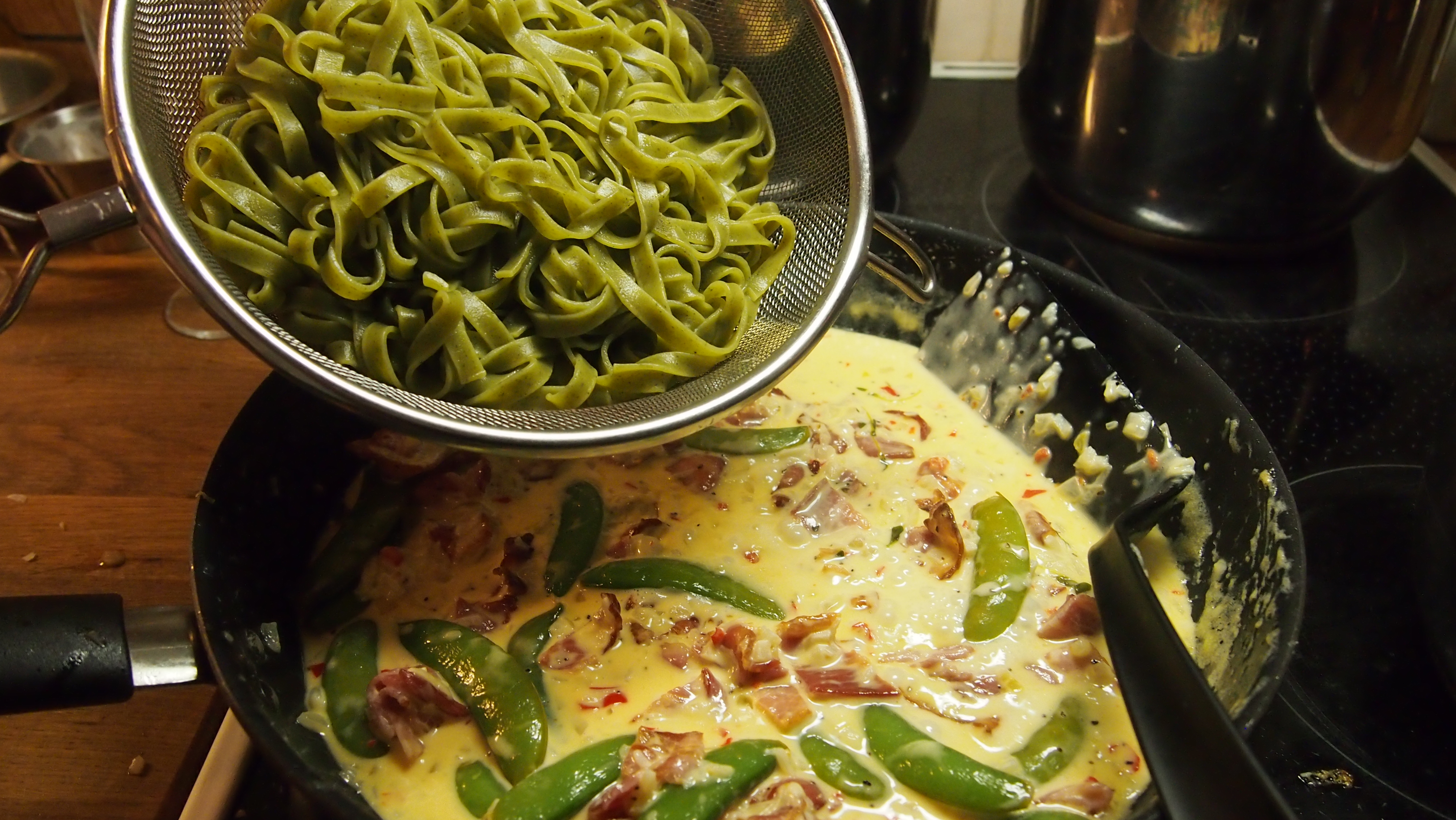 pastaa (tagliatellea 4 kerää per syöjä)