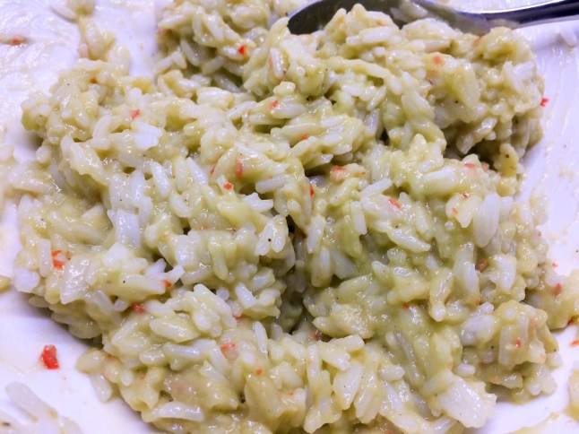 Meillä työnjako annoksen tekemisessä menee yleensä näin: toinen tekee riisin viimeisen vaiheen ja murustelee fetan päälle ja toinen paistaa sillä välin ravut, jotta ajoitus kohtaa juuri niinkuin pitää 🙂