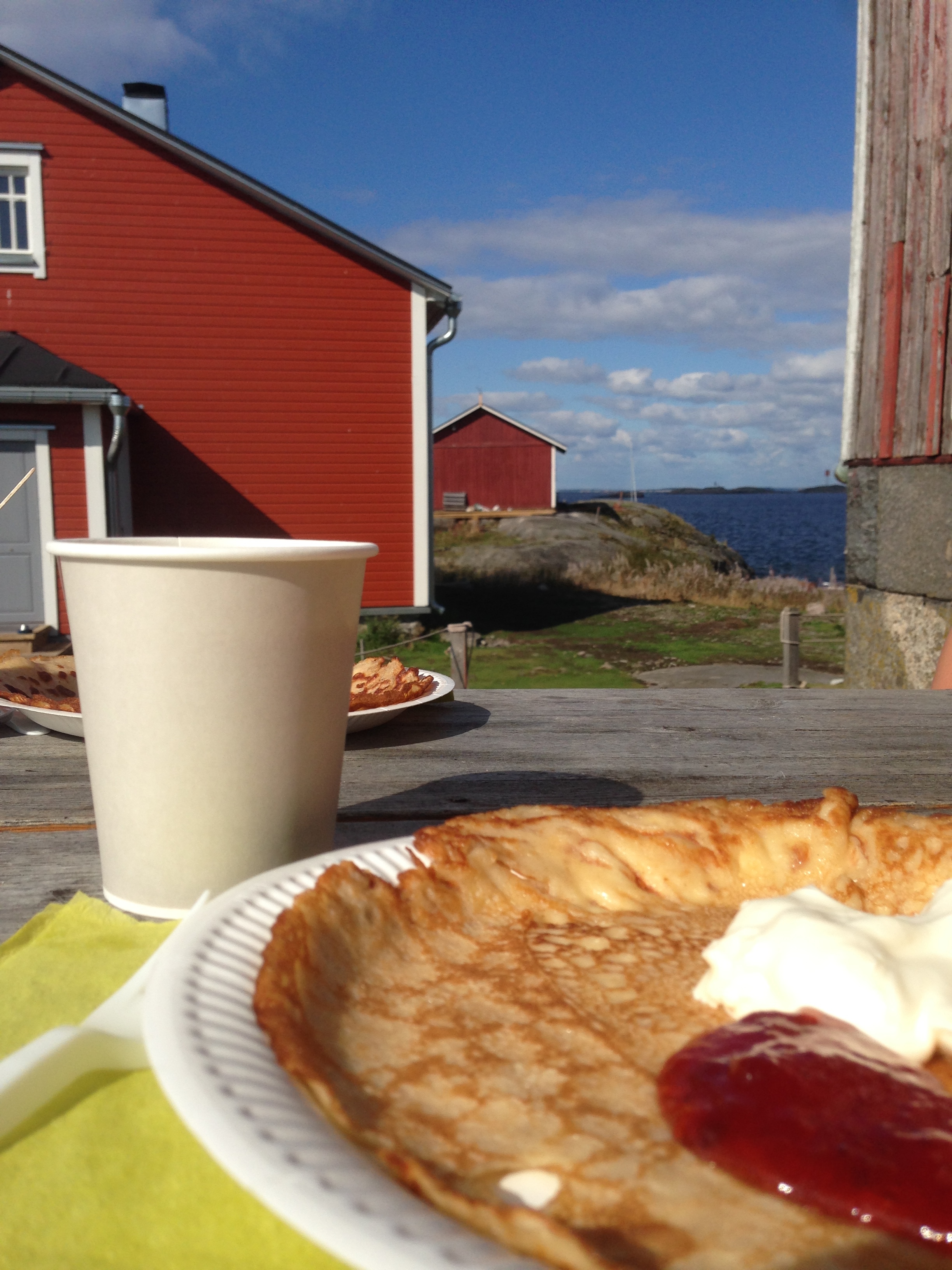 Harri Syrjän Saaristoruokaa -sarja sai heti huomiomme. Ohjelma tarjoaa kauniita, suomalaisia saaristomaisemia ja herkullisia ohjeita saariston tarjoamien raaka-aineiden ympärille rakennettuina. Ja koska mökki on saaristossa, oli aika selvää että tuo keittokirja päätyy meidän hyllyyn. Ja hyvä niin, sillä kaikki tähän mennessä testatut reseptit ovat olleet erittäin mieluisia. Kirjassa oleva raparperi crumble ja tuorejuustovaahto päätyi Juhannuksena mökillä tarjolla olleen saaristolaisbuffetin jälkiruuaksi ja se sulatti jokaisen ruokailijan sydämen. Isosta pellillisestä ei jäänyt muruakaan jäljelle 🙂 Raparperi crumblea tehtiin meidän keittiössä jo toistamiseen kovin odotetuille illallisvieraille. Samalla testiin pääsivät uudet sydämenmalliset piirakkavuuat, jotka sain syntymäpäivälahjaksi Micken siskolta.