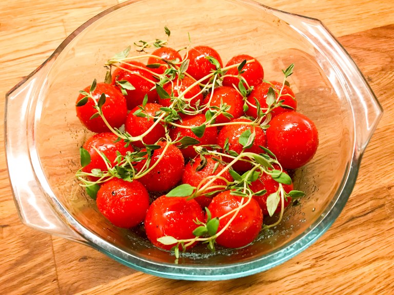 Tässä on kesäsalaatti, joka on ilo nostaa ruokapöytään! Tarjolla on herkullinen salaatti, josta riittää myös silmänruokaa 🙂 Paahteinen kukkakaali, grillattu parmankinkku ja kirsikkatomaatit ovat ihana yhdistelmä ja inkiväärillä maustettu kastike kruunaa kokonaisuuden. Me nautiskelimme salaatista kesäisten munakkaiden kaverina, mutta salaatti toimii lähes minkä tahansa grilliruuan lisukkeeksi.