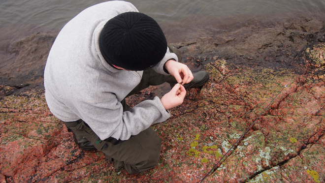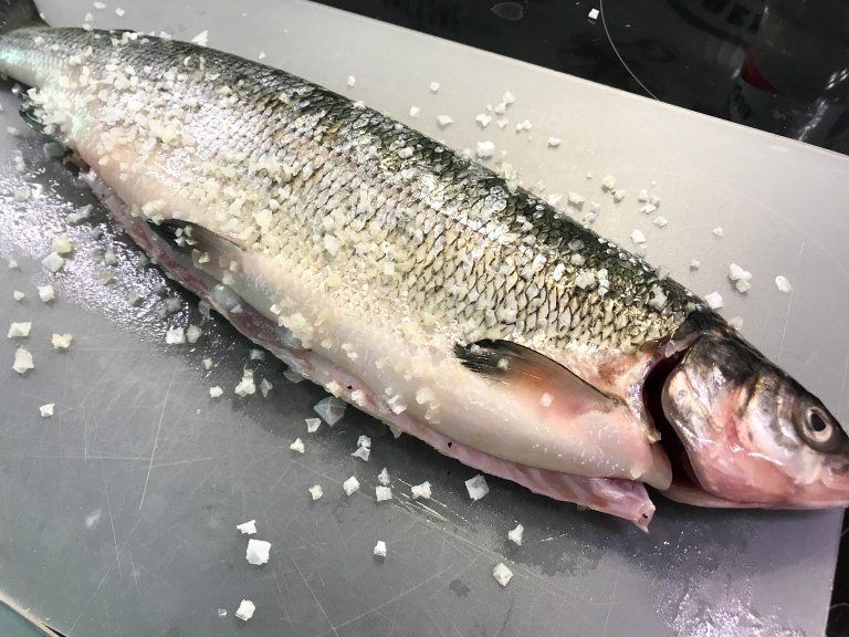 Leikkaa kalat perhosen muotoon. Aloita leikkaamalla kylkiruodot irti selkäruodosta, jolloin saat poistettua selkäruodon. Kun selkäruoto on poistettu, saat leviettyä kalan litteäksi perhoiseksi. Öljyä kala ulkopuolelta ja mausta se sekä sisä- että ulkopuolelta sormisuolalla ja mustapippurilla. Grillaa kalaa kuumassa grillissä nahkapuoli alaspäin kunnes kala on kypsää. Tämä vie grillistä riippuen noin 10-15 minuuttia. Levitä escabeche -kastike grillatun kalan päälle ja tarjoa keitettyjen perunoiden kanssa.