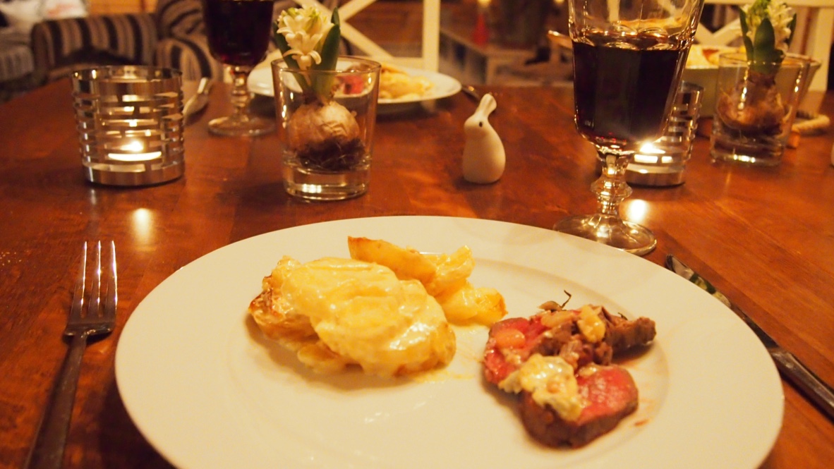 Päärynä ja sinihomejuusto sopii niin täydellisesti yhteen! Ne yhdessä tekevät myös tästä talvisesta salaatista ihanan täyteläisen. Makuja korostaa vielä paahdetut saksanpähkinät. Väriä salaattiin tuo kauniit ja hyvänmakuiset granaattiomenan siemenet. Ne meillä tosin unohtui kotiin pakkaseen kun salaatin mökillä valmistimme. Korvasimme ne vielä metsästä löytyneellä muutamalla puolukalla, hyvin toimivat nekin salaattiin 🙂 Mutta granaattiomena paras ja sitähän löytyy kätevästi myös pakasteesta, pussista saa kätevästi sopivan määrän salaattiin ja loput säästyvät seuraavaan kertaan.