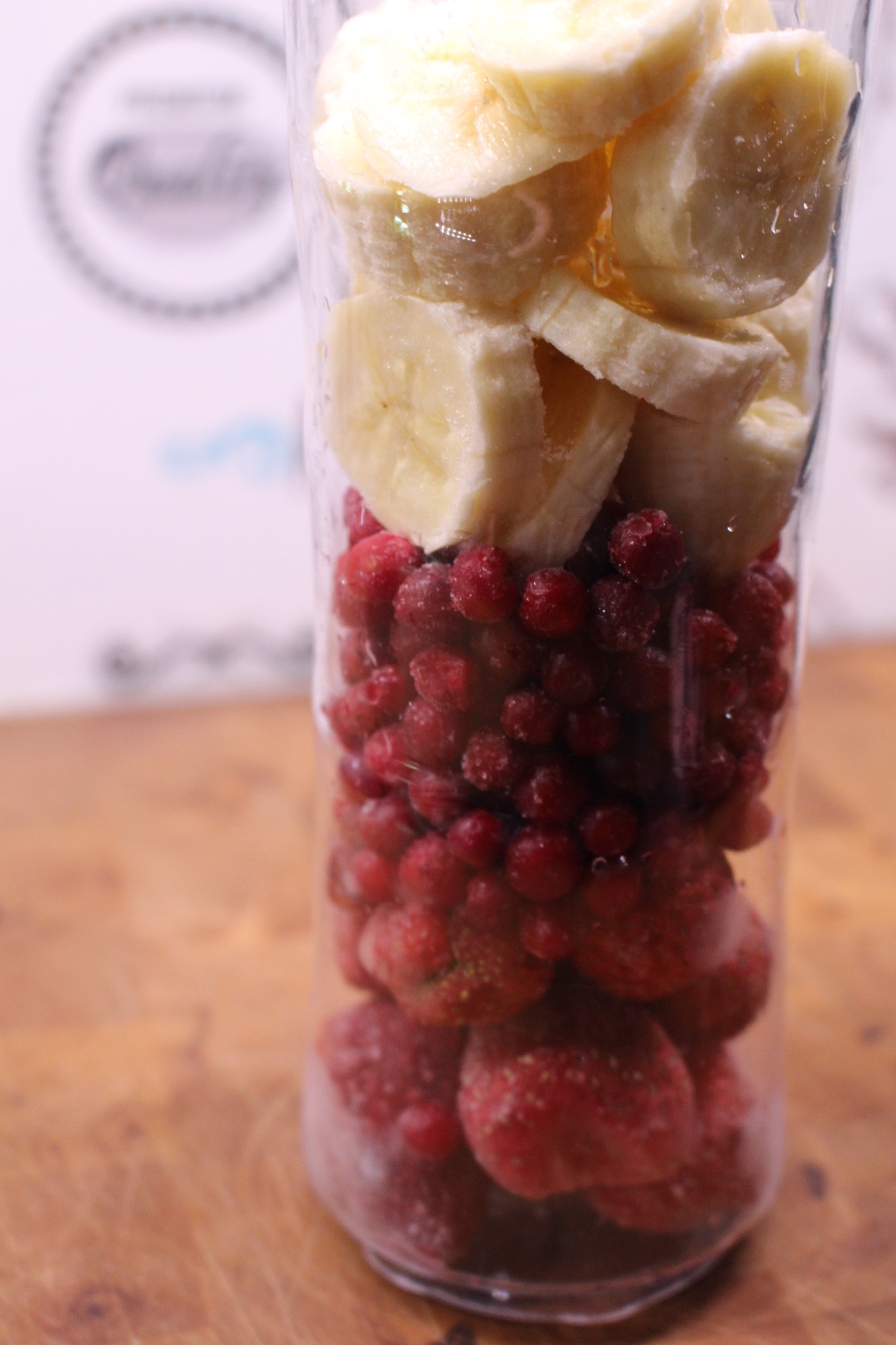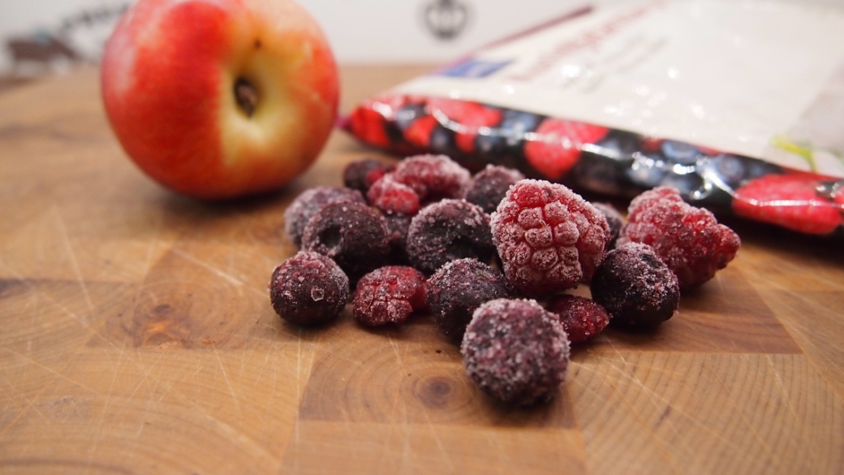 n. 1 dl pakastemarjoja kuten Rainbow kuningatarhedelmiä tai mustikkaa ja vadelmaa tai pelkkää vadelmaan, eri variaatiot sopivat hyvin