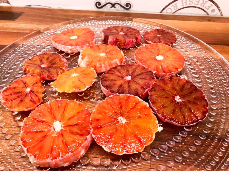 Veriappelsiinit ovat nyt sesongissa ja ai että ne ovat hyviä, maukkaita ja mehukkaita. Ja kovin kauniitakin. Niihin on kehittynyt varsinainen himo ja appelsiinipussit ovatkin tuttu näky meidän ostoskärryissä tällä hetkellä 🙂 Näin Instagramissa Perinneruokaa prkl -tilillä upean kuvan herkullisen näköisestä veriappelsiinisalaatista ja sitähän oli testattava! Ohjetta on hitusen muokattu meidän keittössä. Salaattia voi suositella todella lämpimästi, se on ensinnäkin erittäin kaunis tarjottava ja raikkaan appelsiinin ja suolaisen fetajuuston yhdistelmä on herkullinen.